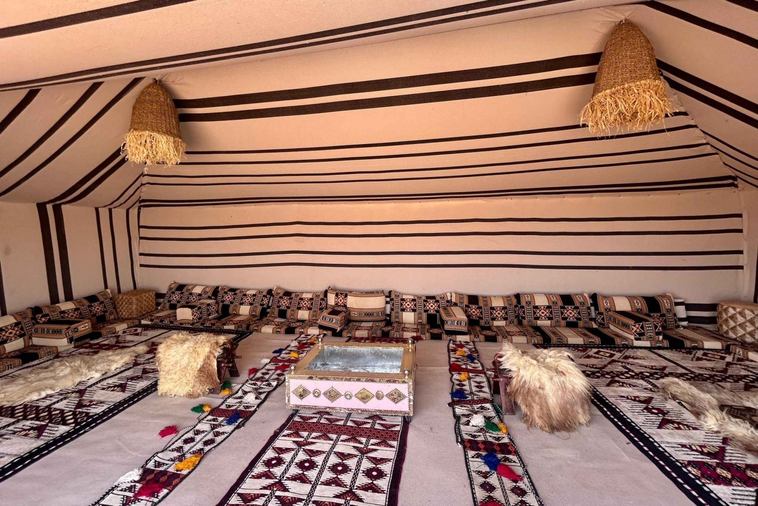 Afhentning og afsætning i Riyadh Professionel ørkenchauffør Dunebashing-oplevelse Traditionel velkomst med arabisk kaffe og dadler Keshta-oplevelse Faciliteterne i Arabian Experience Camp Forsikring FlaskevandEasy cancellation