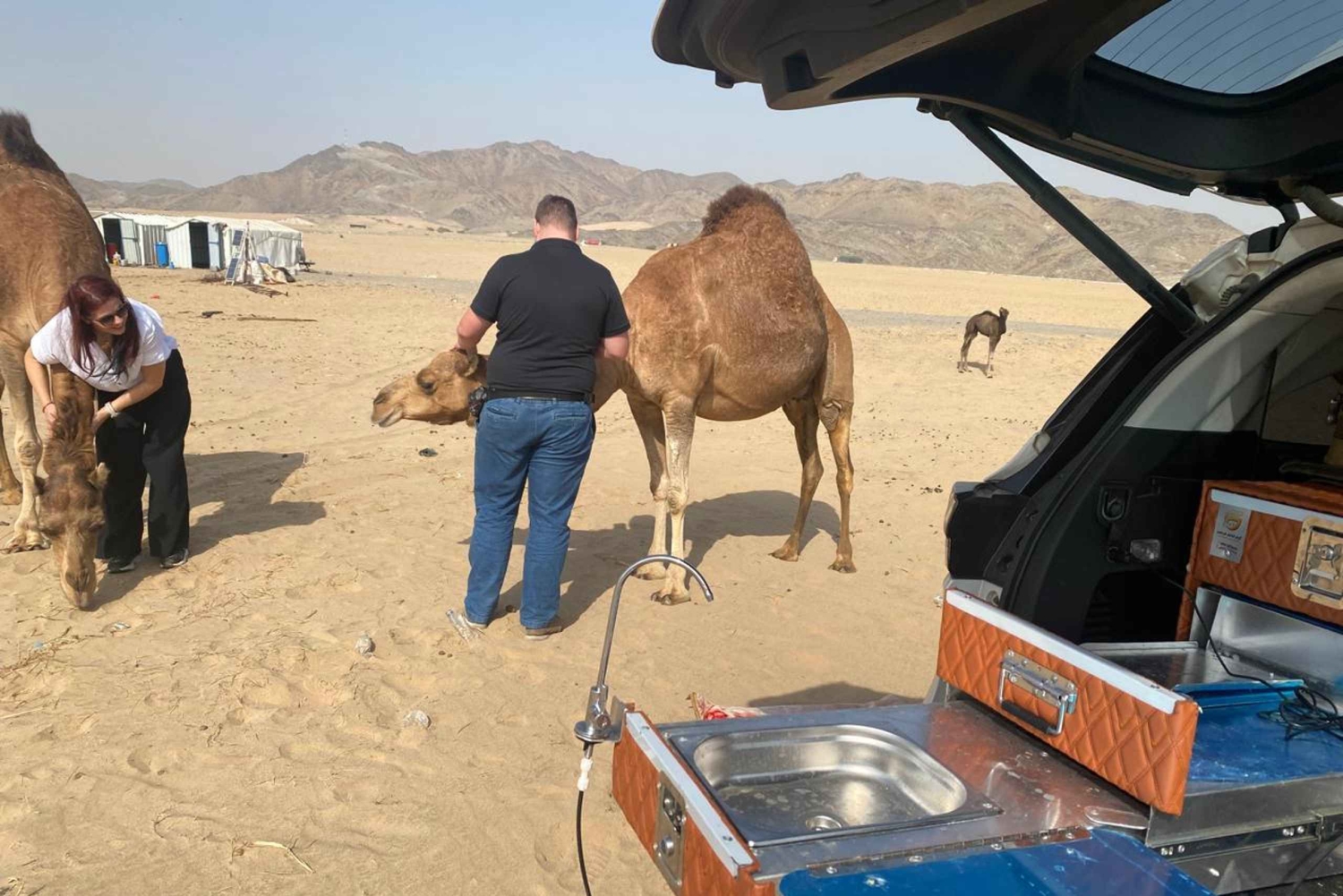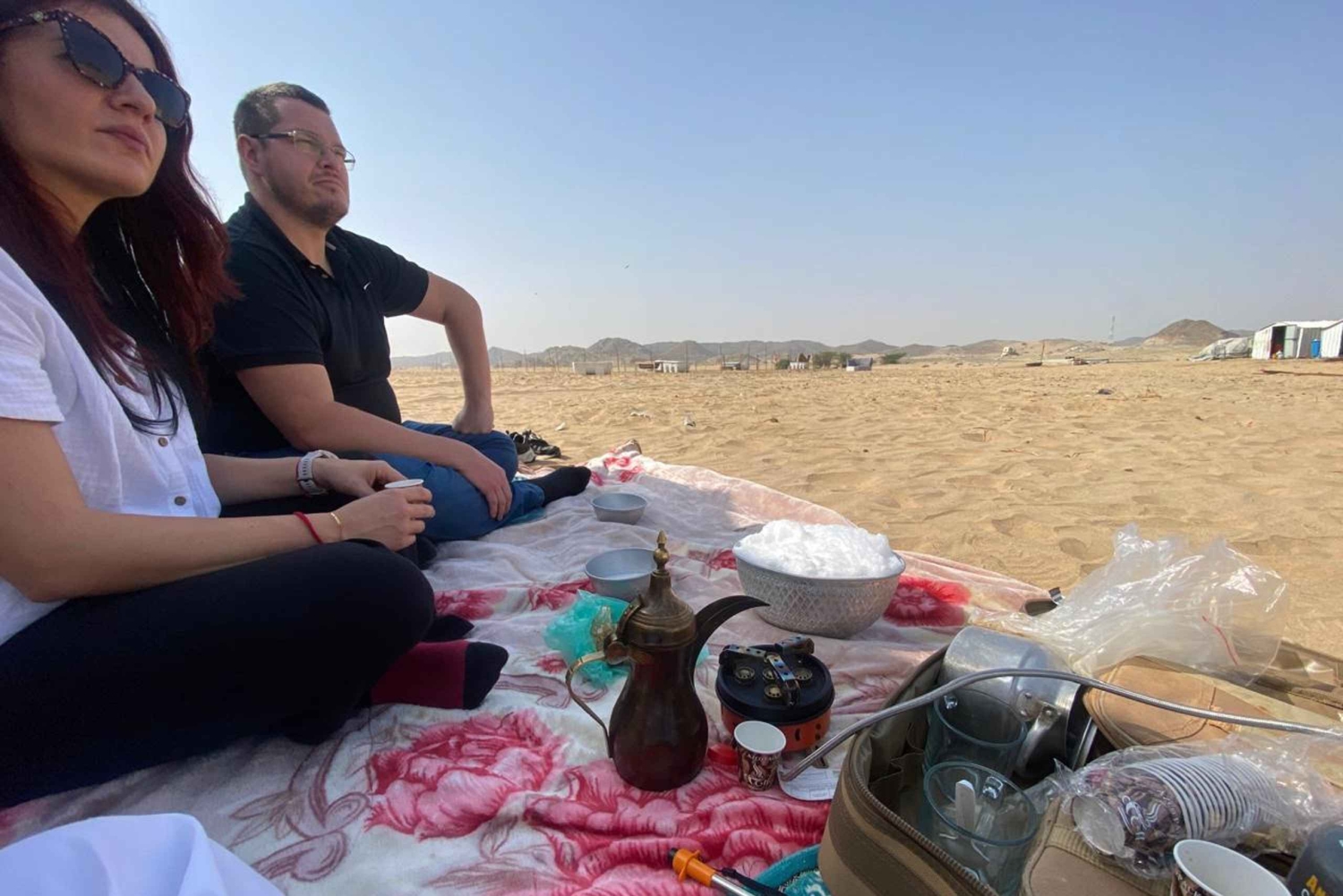 Beginne dein Abenteuer mit einer bequemen Abholung von deinem Hotel in Dschidda oder Mekka. Fahre in einem bequemen Geländewagen in die Wüste, wo deine kulinarische Reise beginnt.