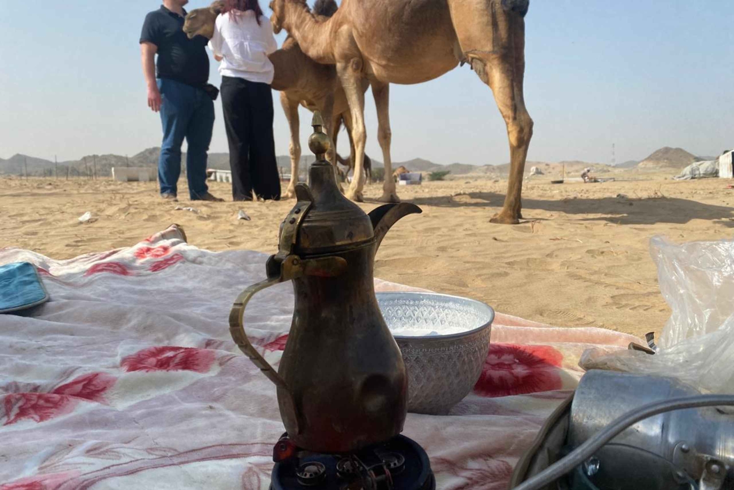 Lerne und probiere die ursprüngliche Art der Zubereitung von saudischem Kaffee und mache Tee in der Wüste. Du kannst auch die Kamele besuchen.