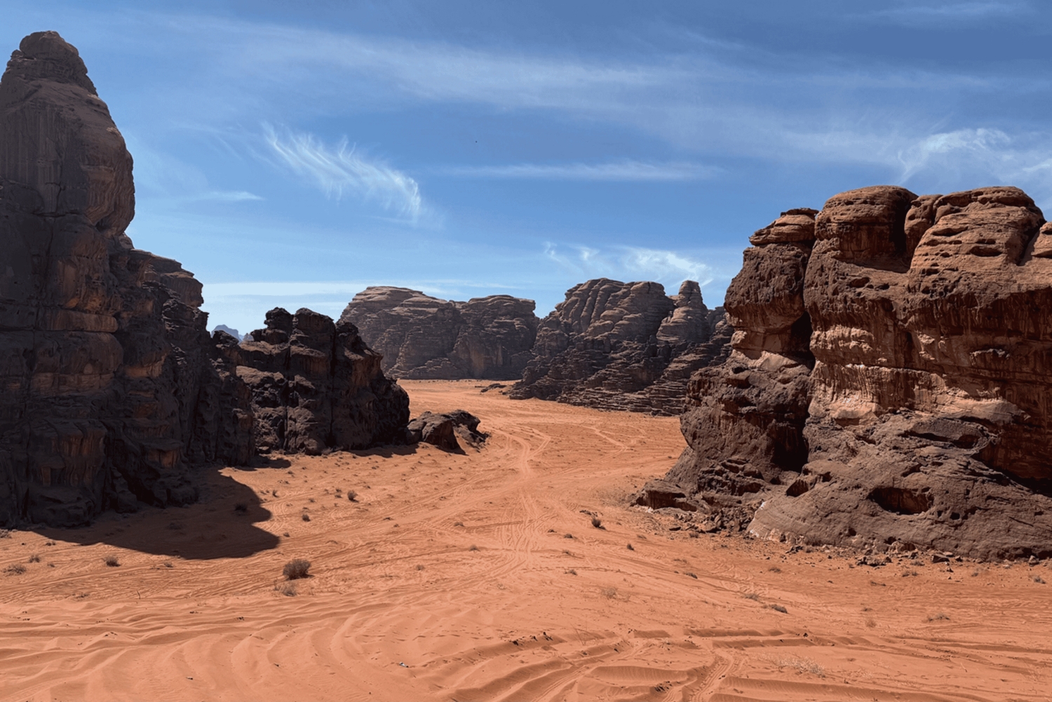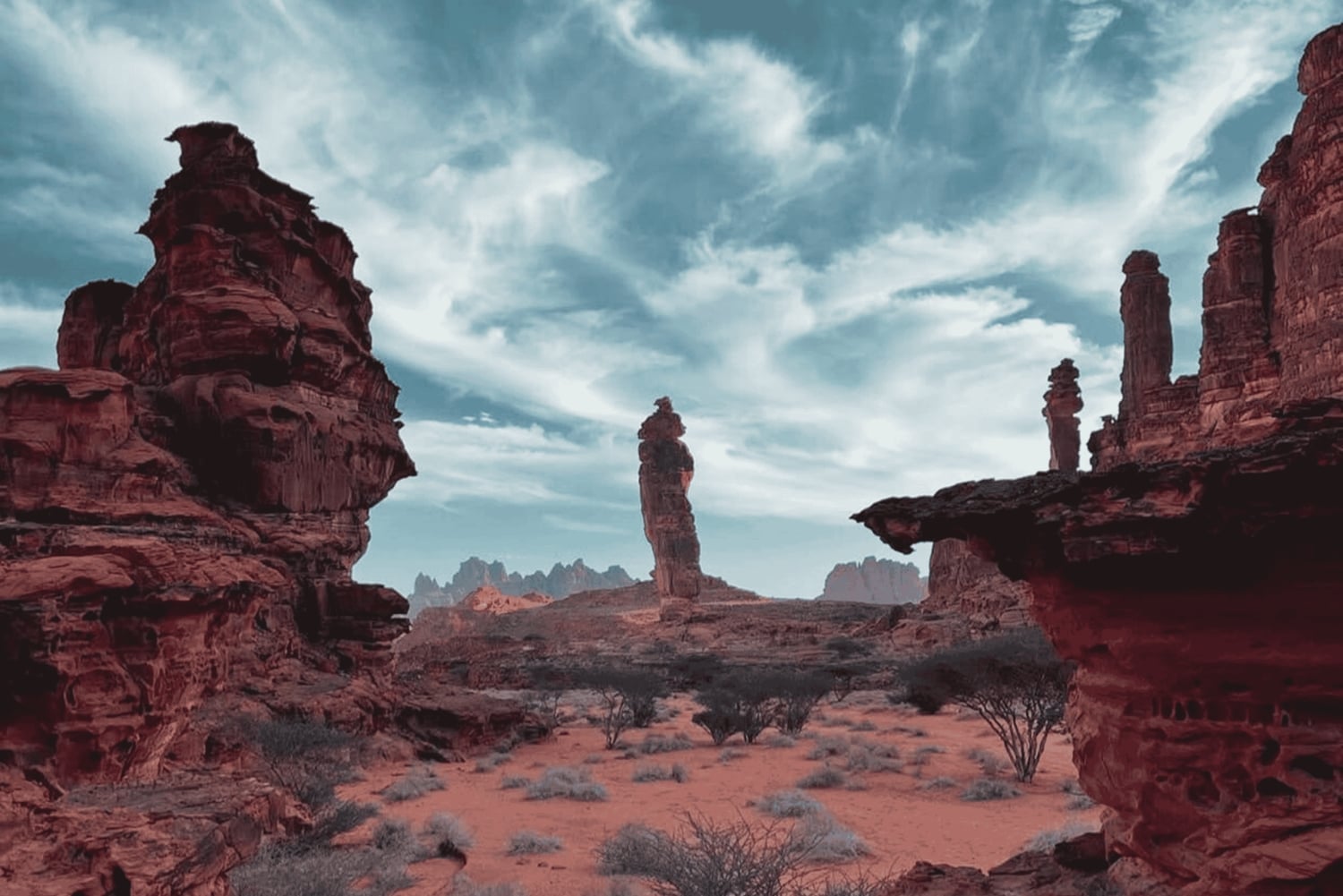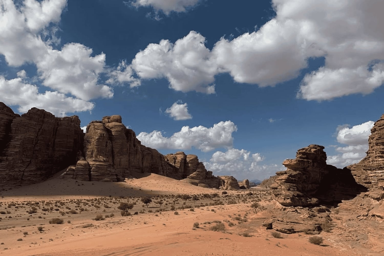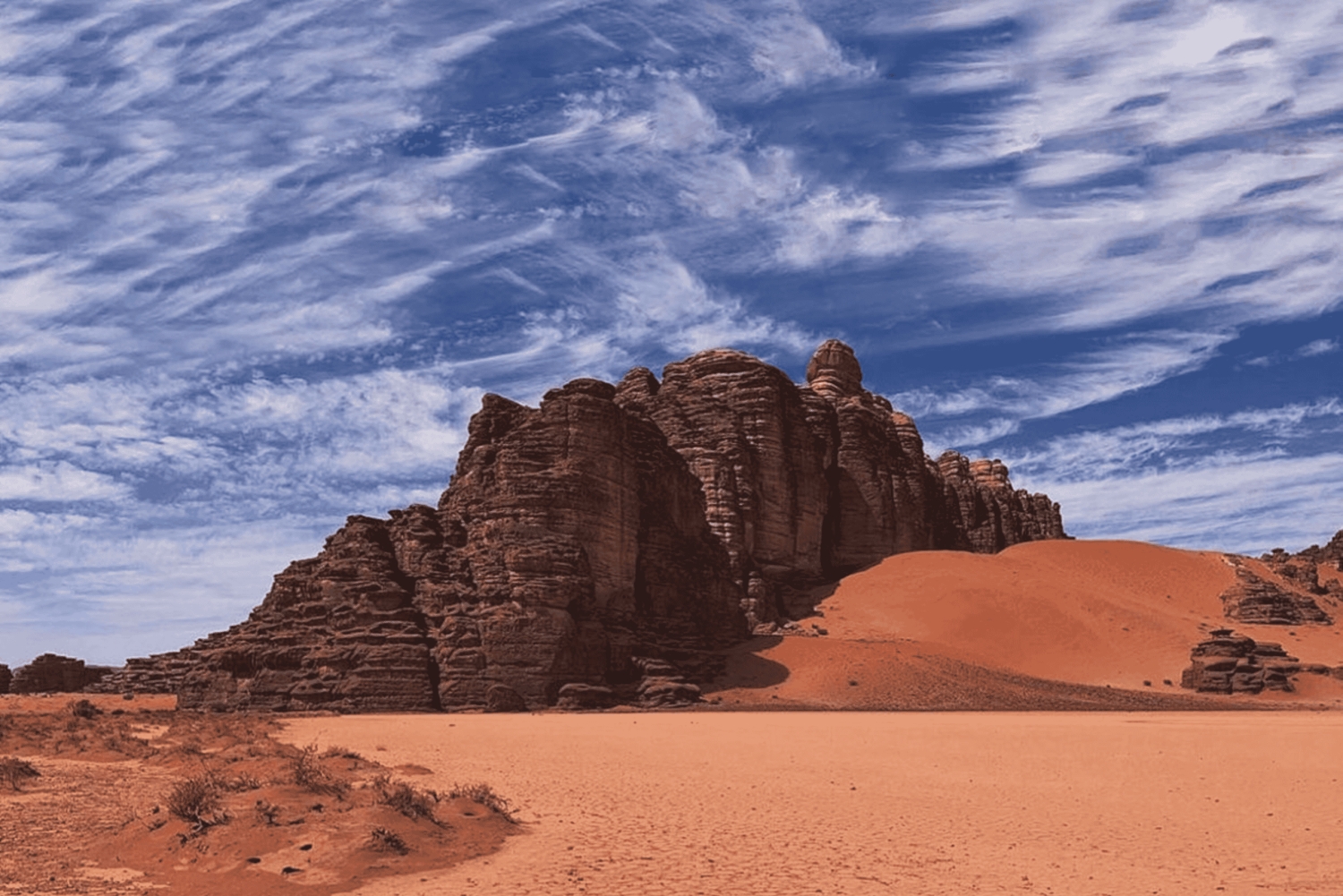 Beginne deine Reise mit einer Abholung von deinem Hotel oder dem Flughafen in Tabuk. Fahre zu den malerischen Wüsten Bajdah und Hesma, wo dein Erkundungstag beginnt.
