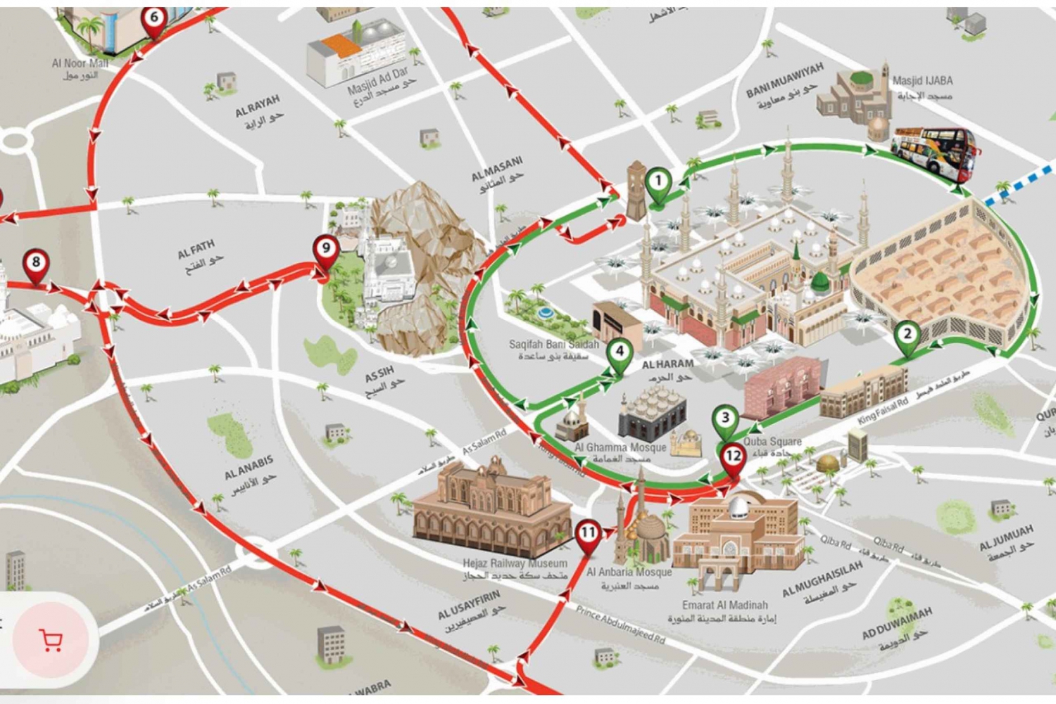 120 ReviewsExplore Al Madinah on an open-top tour bus with a 24-hour hop-on hop-off ticket. Travel along 2 different routes with 12 stops in total, including Al Salam Gate, Al Qiblatain Mosque, and Quba Mosque.