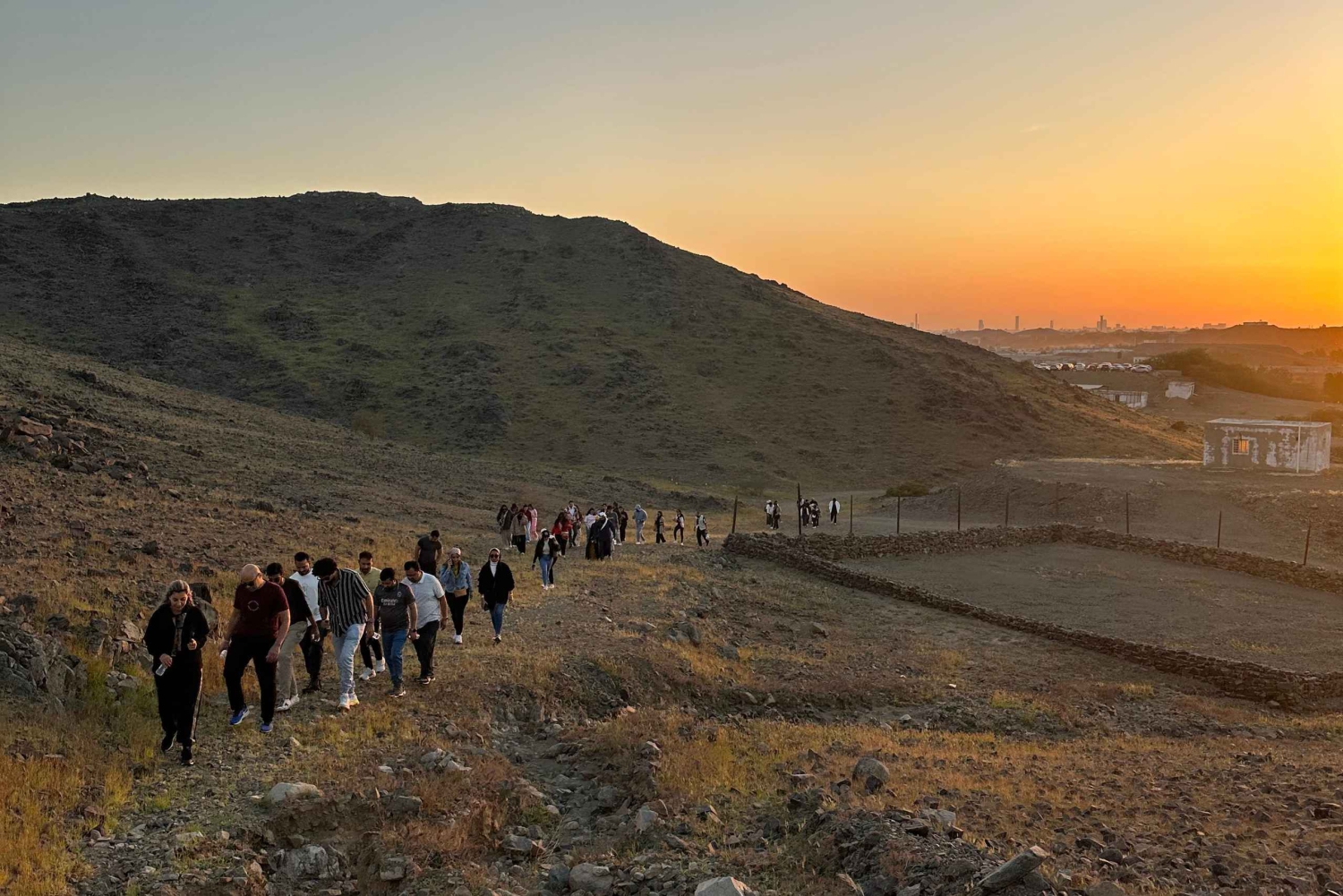 Hiking & Sunset Yoga at Moon Mountain – Jeddah Embark on a unique journey that blends adventure, relaxation, and breathtaking views. We’ll begin with a scenic hike to the summit of Moon Mountain, offering panoramic landscapes of the surrounding desert and rocky hills. At the top, you’ll enjoy a peaceful relaxation yoga session and deep breathing practice, accompanied by the magical sight of the sun setting over the mountainous horizon. The 5-hour trip includes healthy snacks, water, and refreshing juices to keep you energized. After descending the mountain, we’ll take a relaxing drive along Jeddah’s Red Sea Corniche to unwind and enjoy the coastal atmosphere. You’ll receive a meeting point in advance, and I’ll drop you off at any location of your choice within the city. Optional add-ons are available upon request (at your own expense), including: • Authentic local food tasting • Traditional shisha by the sea • Personalized visits to cultural or local spots This experience offers a perfect escape into nature, reflection, and calm—ideal for those seeking balance and inspiration.Includes
