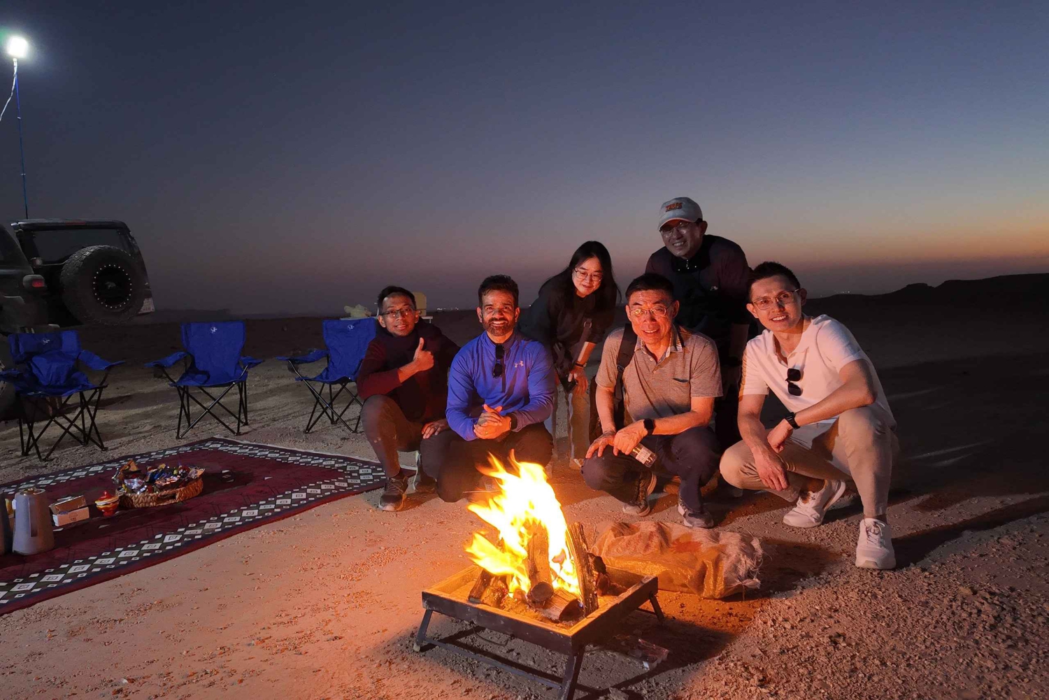 Edge of the World Adventure: A Journey Through Time and Nature Sunset at the Edge of the World As the sun begins to dip below the horizon, arrive at the Edge of the World, an awe-inspiring cliff offering panoramic views of the vast desert stretching endlessly below. Watch the sky transform into a canvas of warm oranges, pinks, and purples—an unforgettable sight that captures the essence of the Arabian wilderness. Dinner Under the Stars Join us for this extraordinary journey and experience the beauty, history, and mystery of Saudi Arabia’s desert like never before!Includes