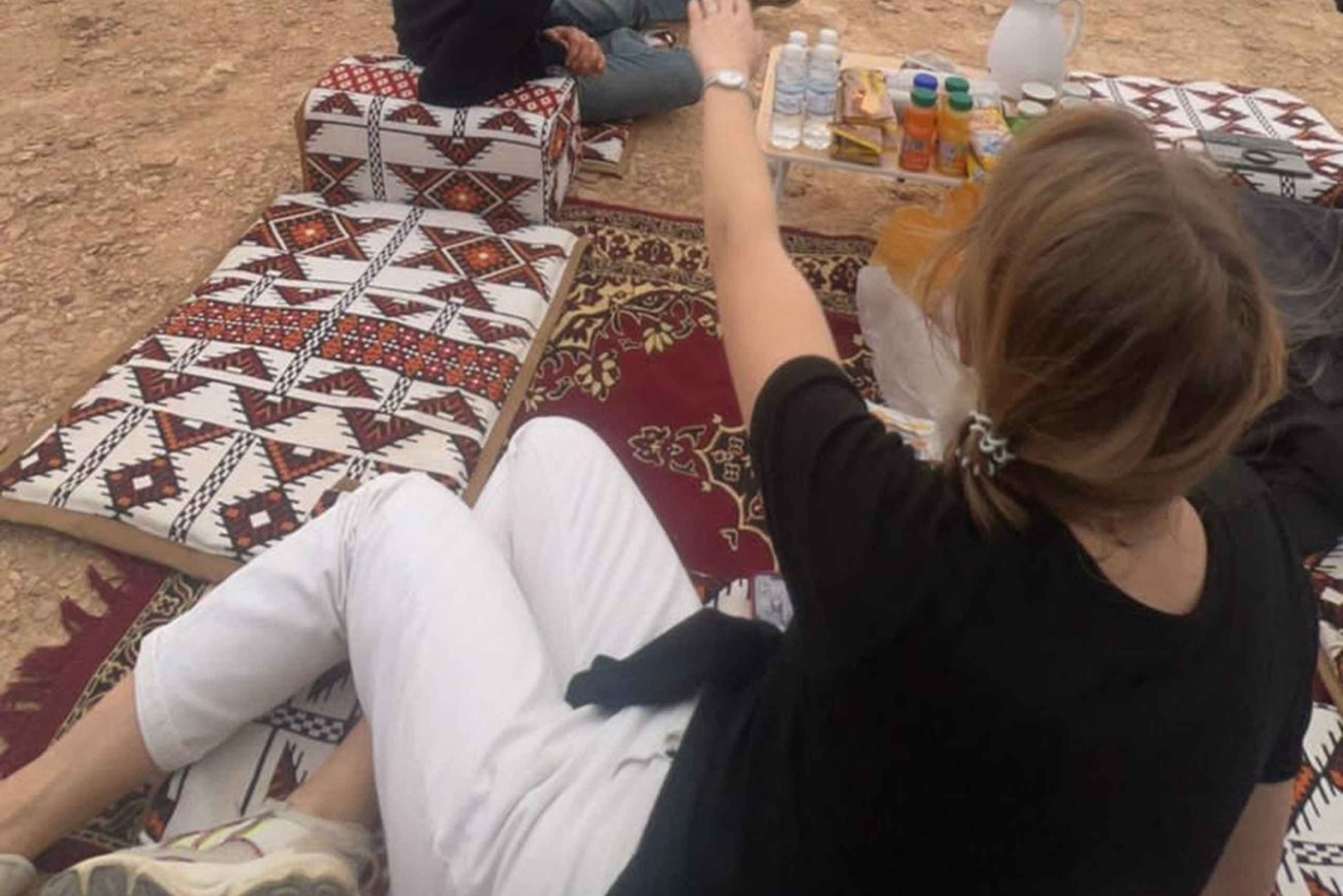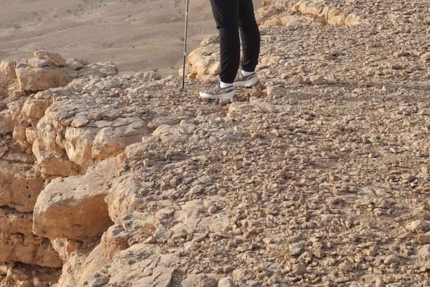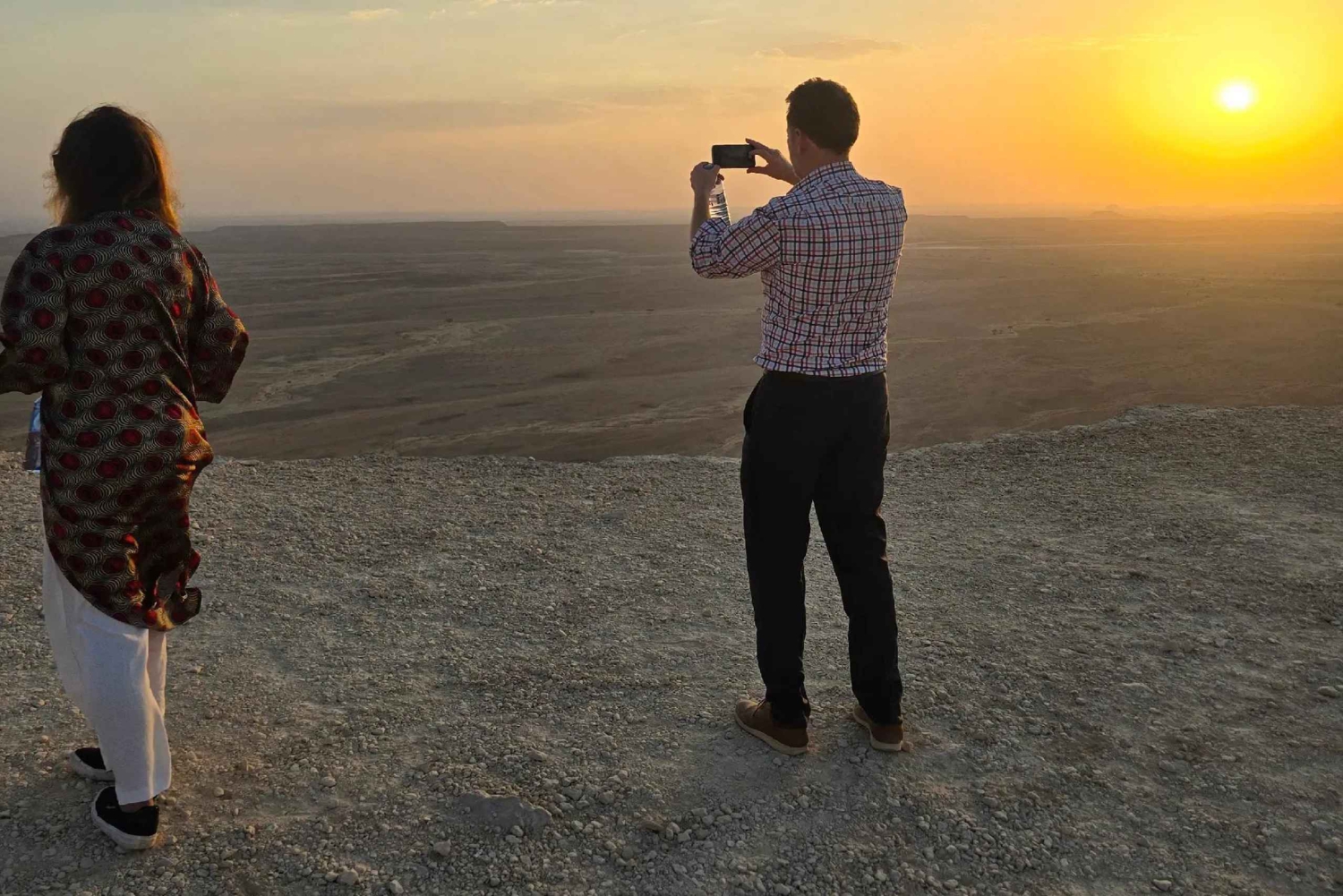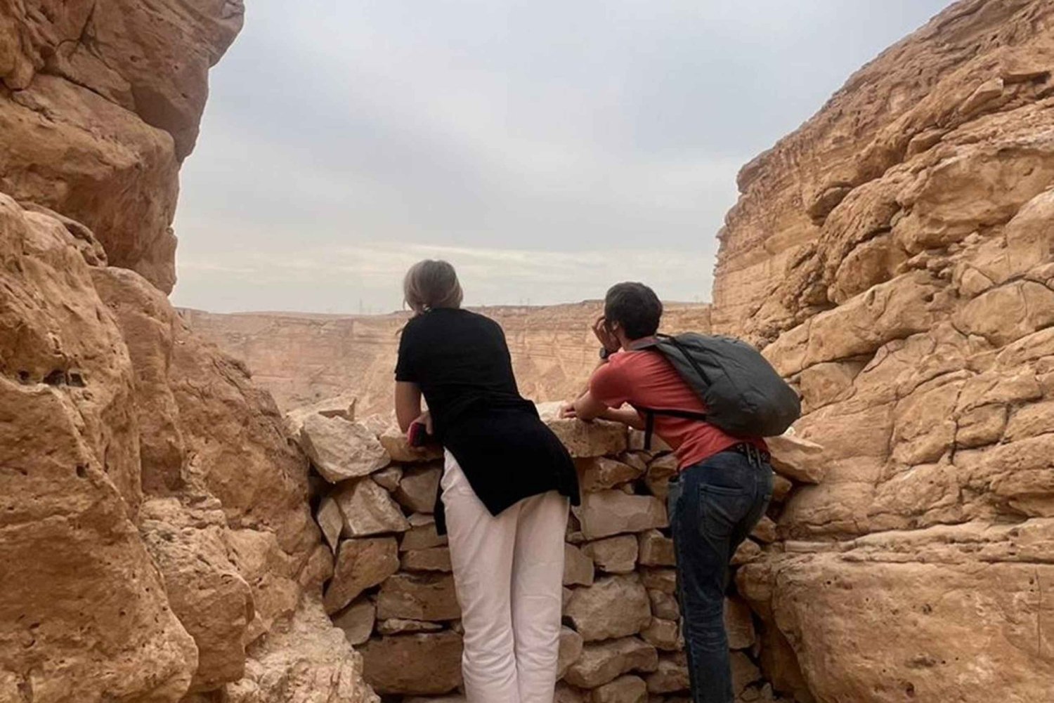 Parti per un viaggio magico ai confini del mondo lungo il sentiero Al-Manjur. Un affascinante trekking attraverso il terreno accidentato del Najd ti regala un'esperienza elettrizzante e un tramonto mozzafiato su una scogliera imponente vicino a Riyadh. Un'avventura indimenticabile ti aspetta a Riyadh, ai confini del mondo, lungo l'affascinante Al-Manjur Trail, dove la bellezza naturale incontra una ricca storia. Inizia con un'escursione moderata fino alla cima di questa scogliera alta 300 metri, una meraviglia geologica che offre viste mozzafiato sul vasto paesaggio desertico. Sali più in alto e goditi la vista mozzafiato dei monti Tuwaiq, dove l'orizzonte si estende all'infinito, toccando lontane isole montuose che assomigliano a onde che si infrangono nel deserto. Percorri sentieri accidentati fiancheggiati da antichi fossili. Al calar del sole, riunisciti per una serata accogliente. Qui, davanti a una tazza di tè e caffè saudita, fai amicizia con i tuoi compagni di avventura e condividi le tue storie e riflessioni sotto un tramonto dorato. Un viaggio mozzafiato al bordo del mondo attraverso il sentiero Al Manjur: goditi uno spettacolare percorso attraverso il deserto di Riyadh, che culmina nelle affascinanti scogliere del 'Bordo del Mondo attraverso il sentiero Al Manjur', una meraviglia naturale rinomata per le sue imponenti formazioni rocciose e i panorami infiniti del deserto. Escursione guidata al bordo del mondo attraverso il sentiero Al Manjur: inizia la tua avventura con un'escursione di media difficoltà fino alla cima, dove la vista panoramica sul deserto arabo si estende fino all'orizzonte, offrendo l'opportunità di scattare foto mozzafiato e di vivere un'esperienza autentica della bellezza naturale dell'Arabia Saudita.Includes