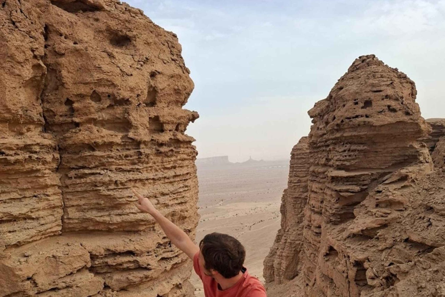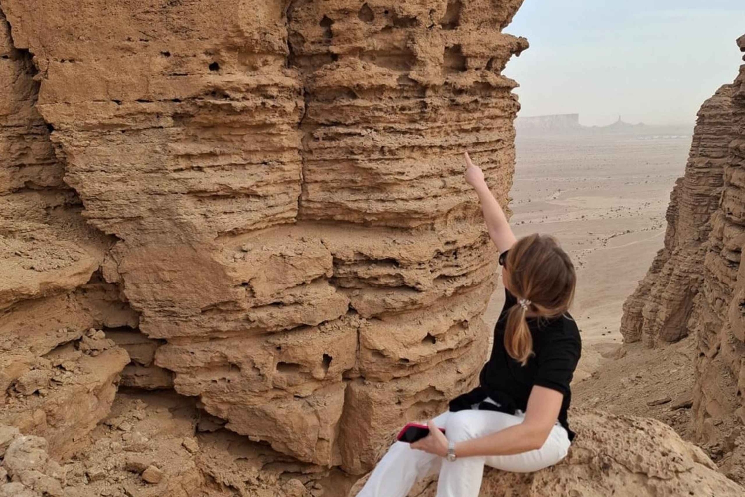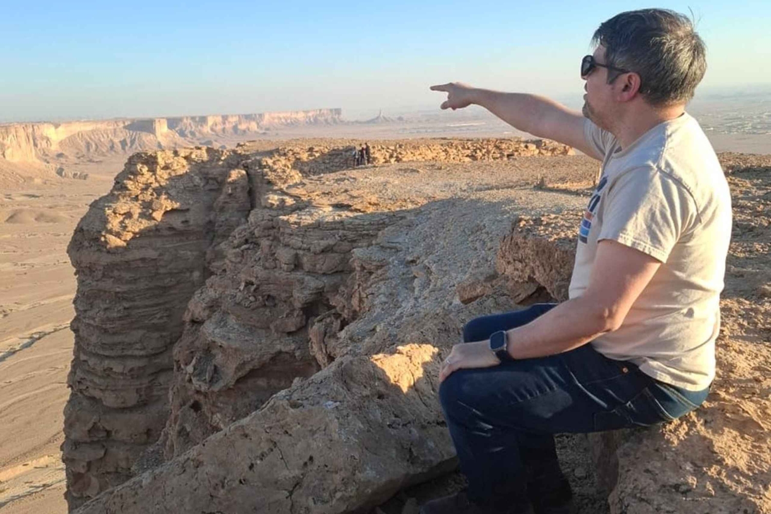 Parti per un viaggio magico ai confini del mondo. Un viaggio mozzafiato attraverso il terreno accidentato del Najd offre un'esperienza esaltante e un tramonto magico su una scogliera imponente vicino a Riyadh.