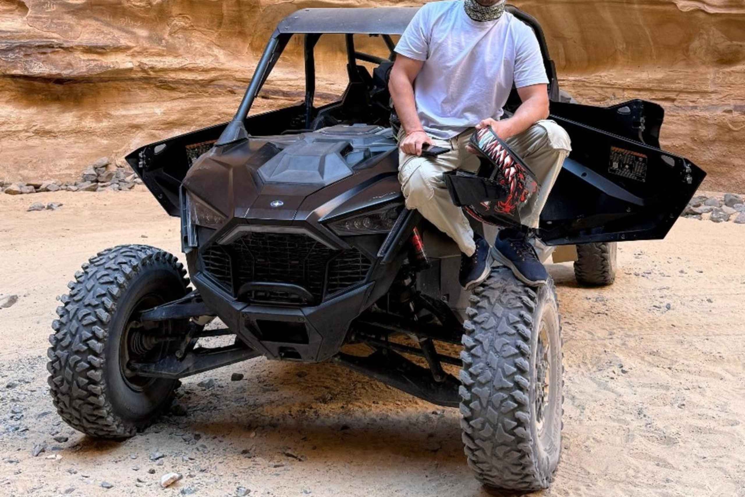 Embark on a thrilling buggy adventure in the heart of the AlUla desert. Strap into a modern, powerful off-road buggy, specially designed to conquer the rugged landscapes of AlUla. Sit back and relax as your expert driver navigates the challenging dunes, winding trails, and rocky canyons. Experience the pure excitement of speed and challenging terrain without needing any driving experience. Take in breathtaking panoramic views of the majestic sandstone mountains and golden dunes from a safe, comfortable seat. Discover hidden geological wonders and enjoy a fresh perspective on AlUla's ancient beauty.Includes