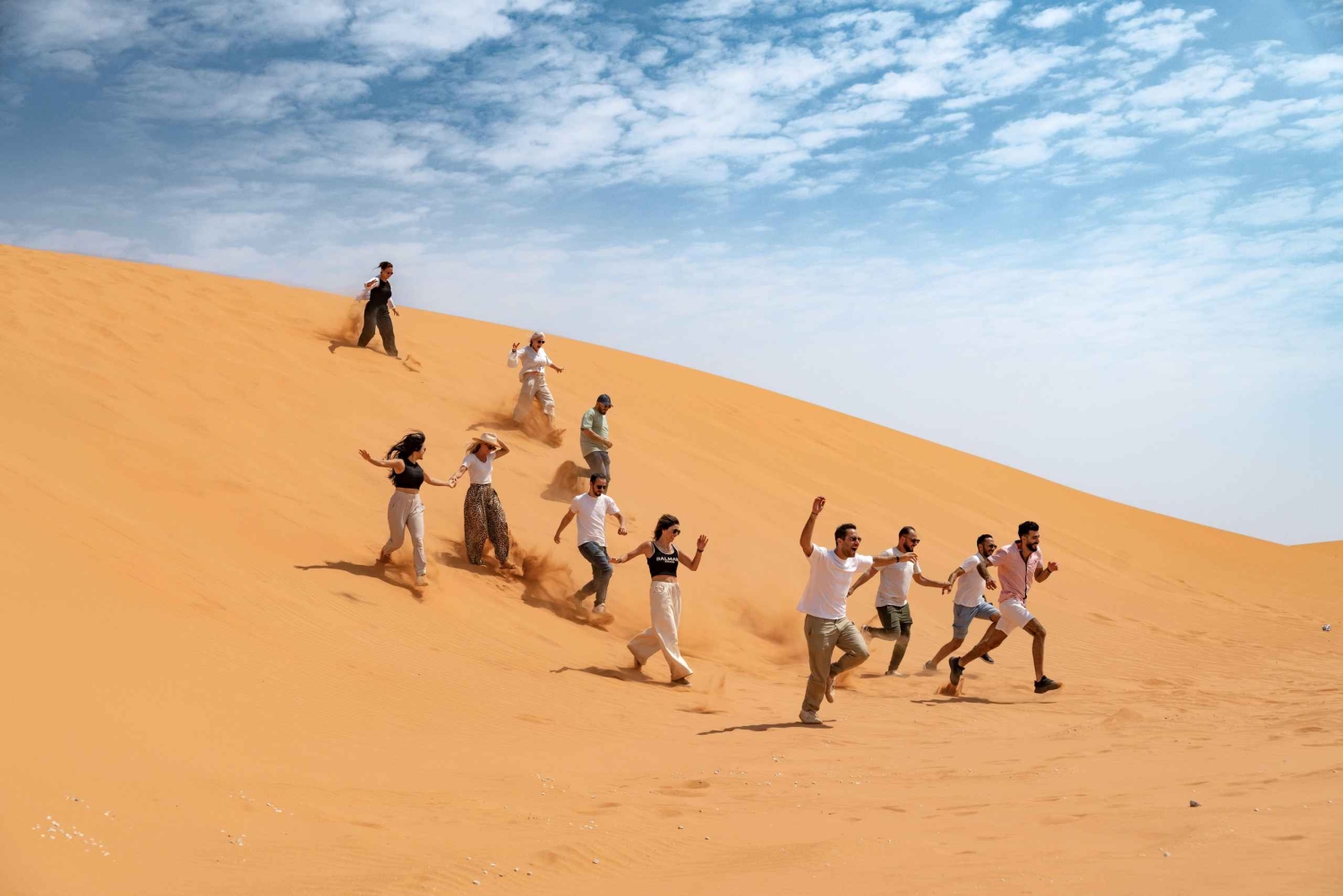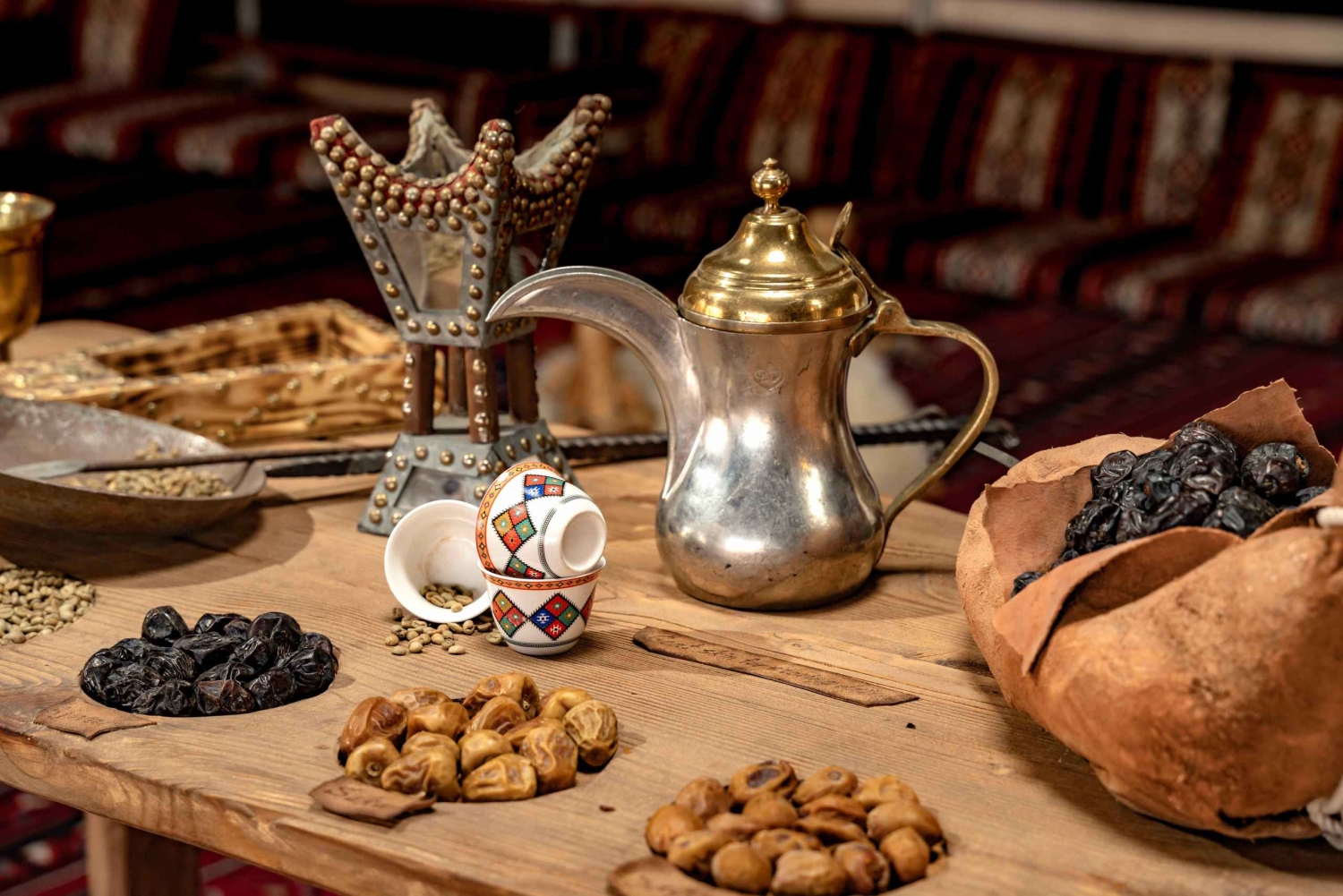 Fai un salto indietro nel tempo e scopri le tradizioni senza tempo di un autentico campo nel deserto, nascosto tra le dune della riserva reale incontaminata di Re Abdulaziz. Esplora il campo e immergiti in una varietà di aree interattive e attività dedicate a mostrare il meglio della cultura e della tradizione del deserto. Bevi il caffè tradizionale e mangia i datteri prima di goderti la tranquillità di un giro in cammello sulle dune pittoresche, per poi provare l'emozione di scendere con il sandboard. Concediti un banchetto beduino completo preparato con tecniche di cottura antiche che risalgono a migliaia di anni fa, poi rilassati e digerisci sotto le stelle attorno a un falò. Il tuo mezzo di trasporto partirà da una località a nord di Riyadh e ti porterà in un viaggio di un'ora tra le dune prima di riportarti nello stesso punto la sera.Includes