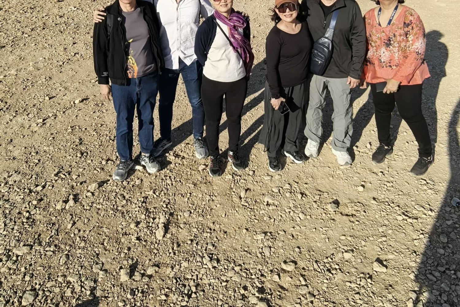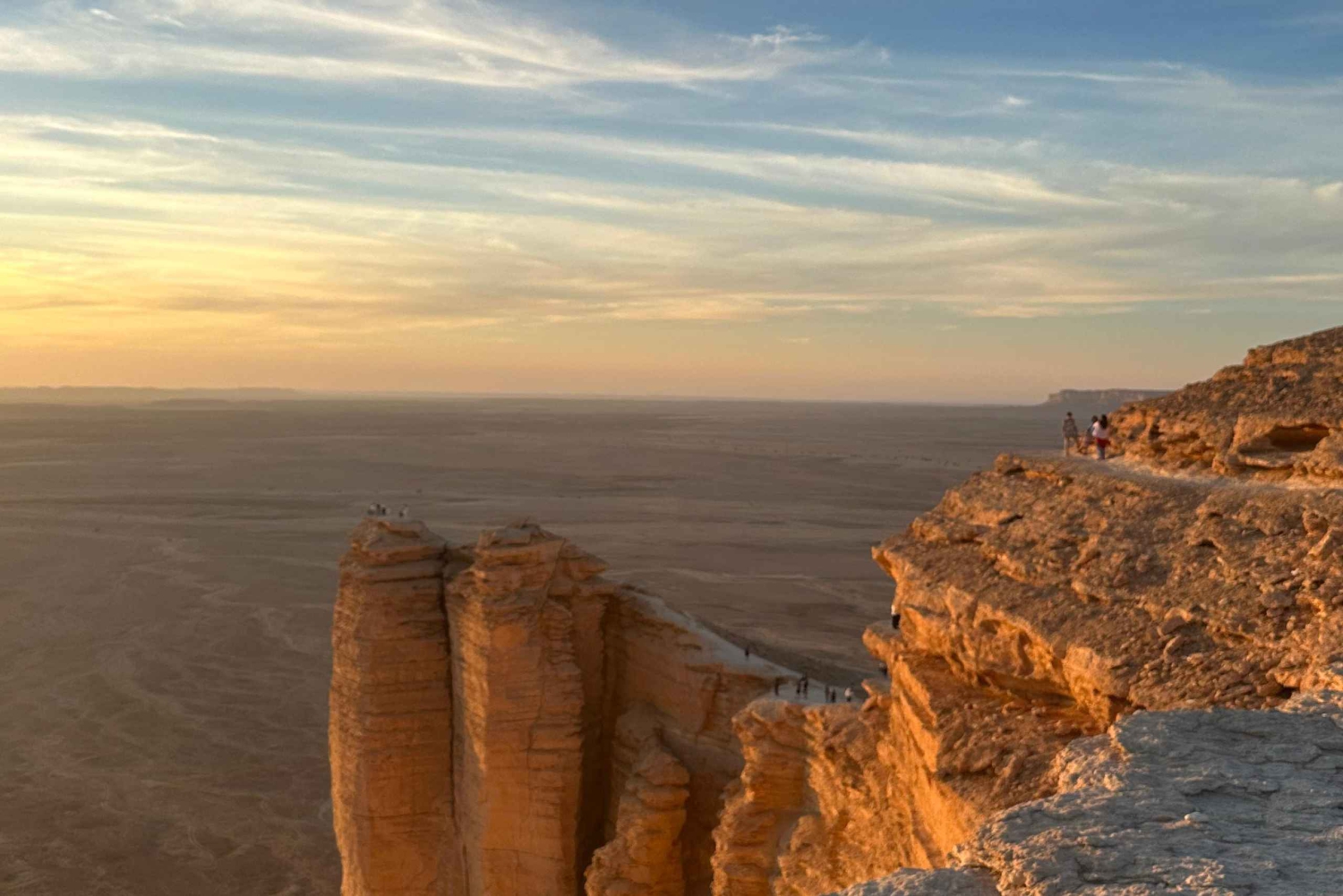 Avventura ai confini del mondo: un viaggio attraverso il tempo e la natura Tramonto ai confini del mondo Quando il sole inizia a scendere sotto l'orizzonte, arriva ai confini del mondo, una scogliera mozzafiato che offre una vista panoramica sul vasto deserto che si estende all'infinito. Guarda il cielo trasformarsi in una tela dai toni caldi di arancione, rosa e viola: uno spettacolo indimenticabile che cattura l'essenza della natura selvaggia araba. Cena sotto le stelle Unisciti a noi in questo viaggio straordinario e vivi la bellezza, la storia e il mistero del deserto dell'Arabia Saudita come mai prima d'ora!Includes