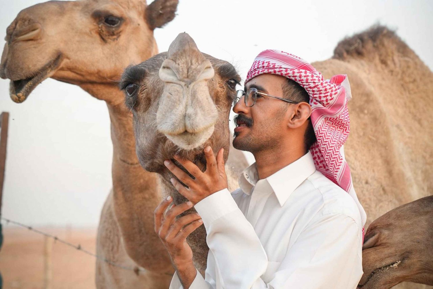伝統、冒険、サウジアラビアのおもてなしが一体となったユニークな旅に出かけましょう。地元のラクダ農場で、フレンドリーなホストのファハドがお迎えします。牧場を探検し、ラクダの世話について学び、伝統的なテントの下で新鮮なラクダミルクを楽しみながら、サウジアラビア人とラクダの文化的な深い絆を発見してください。 アラビックコーヒーやナツメヤシの試食を楽しみながら、砂漠の生活に関する魅力的な話に耳を傾けてください。黄金色の砂浜と穏やかな景色に囲まれたこのツアーでは、サウジアラビアの伝統を深く理解することができます。サウジアラビアの伝統文化への理解を深めることができます。Includes