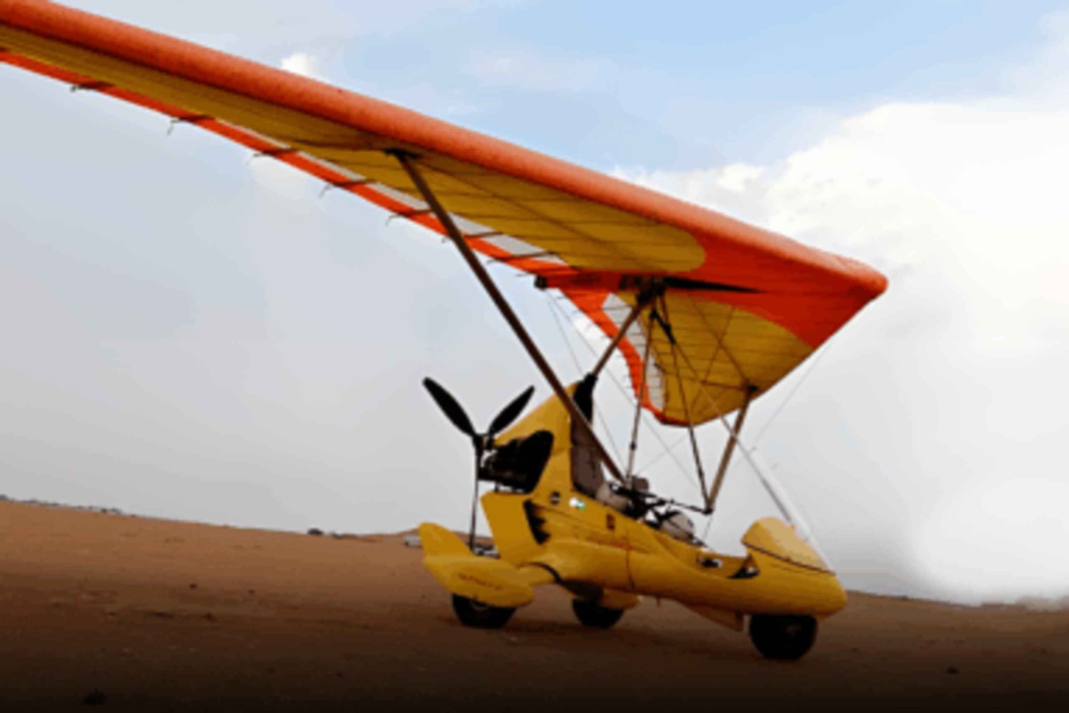 リヤドの砂漠の上空で、特別なグループパラグライダー体験をお楽しみください。3〜5人の冒険家からなる少人数グループ向けに設計されたこのツアーでは、飛行のスリルと素晴らしい日の出の景色をご堪能いただけます。 まずは、リヤドの指定された場所で早朝の集合となります。そこからは、快適な移動サービスで、最適な風と壮大な自然美を誇る特別な飛行場へとお連れします。 到着後、経験豊富な認定パラグライダーインストラクターにご挨拶ください。装備、飛行手順、タンデム飛行中の流れなど、安全に関する説明をしっかりとお聞きください。全員が自信を持って安全に飛行できるよう、ご説明いたします。安全は、引き続き最優先事項です。 夜明けの光が地平線を照らし始めたら、パラグライダー体験を開始します。グループの合計飛行時間は約1時間です。つまり、各参加者はスリル満点のタンデム飛行セグメントを楽しみ、交代で優雅に空を飛ぶことができます。 リヤドを囲む広大な砂漠の風景の上を滑空し、信じられないほどの無重力感と自由を体験してください。複雑な模様を描く砂丘と、遠くに目を覚ます街が、日の出の魔法のような黄金色に染まる様子をご覧ください。インストラクターがすべての技術的な側面を専門的に管理し、息をのむような景色と飛行の静けさを十分に吸収していただけます。 爽快な飛行の後は、指定された場所にゆっくりと着陸します。すべての参加者が飛行を終え、機材をまとめたら、リヤドの集合場所まで快適な移動サービスでお送りします。空中での冒険の素晴らしい思い出をお持ち帰りください。Includes