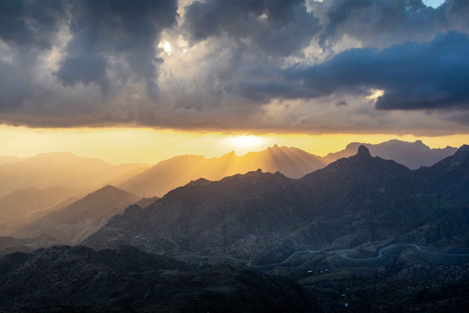 Ga met ons mee op een unieke wandeltocht over de Meteor Trail in Taif, waar je kunt genieten van een uitzonderlijke en adembenemende zonsondergang.