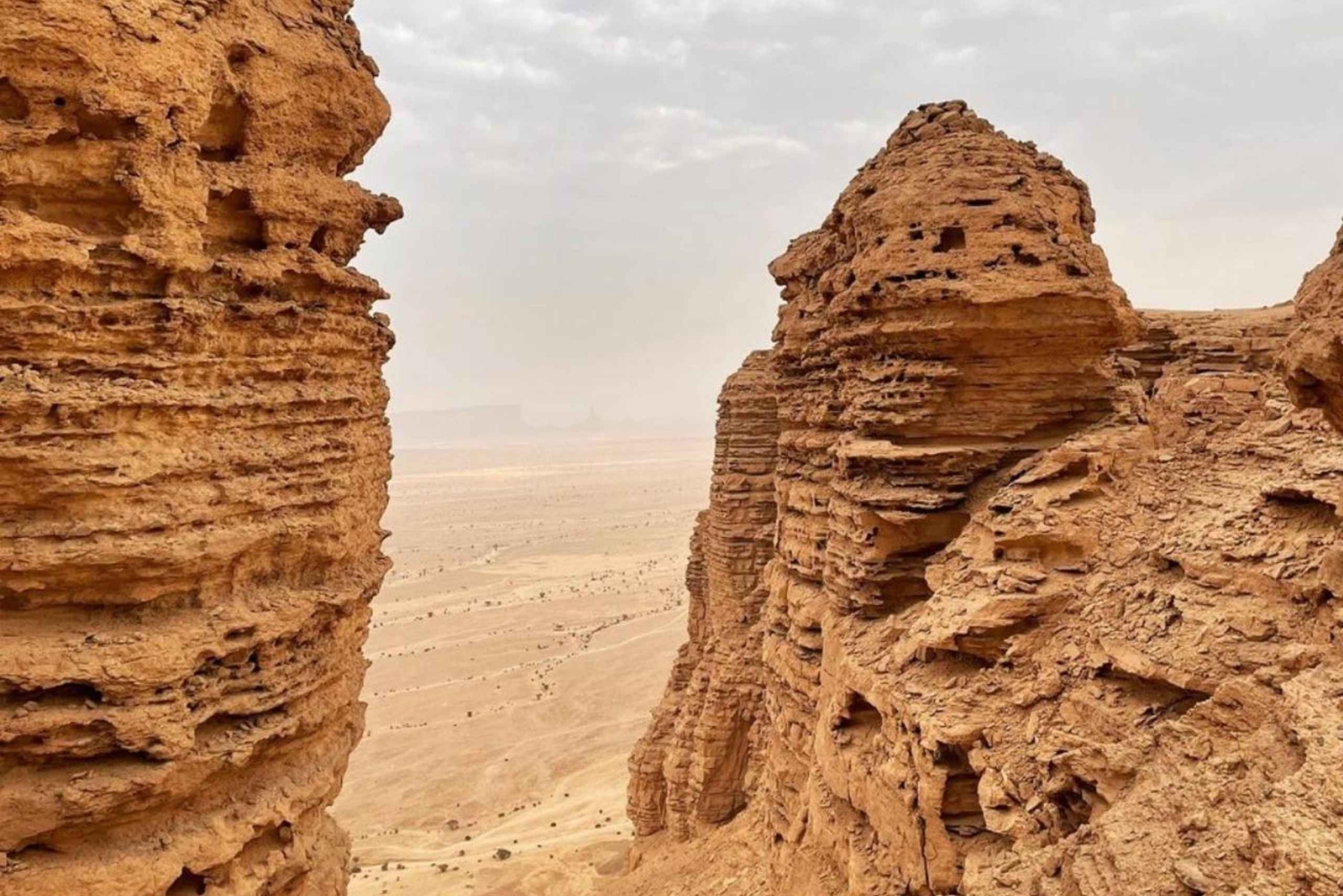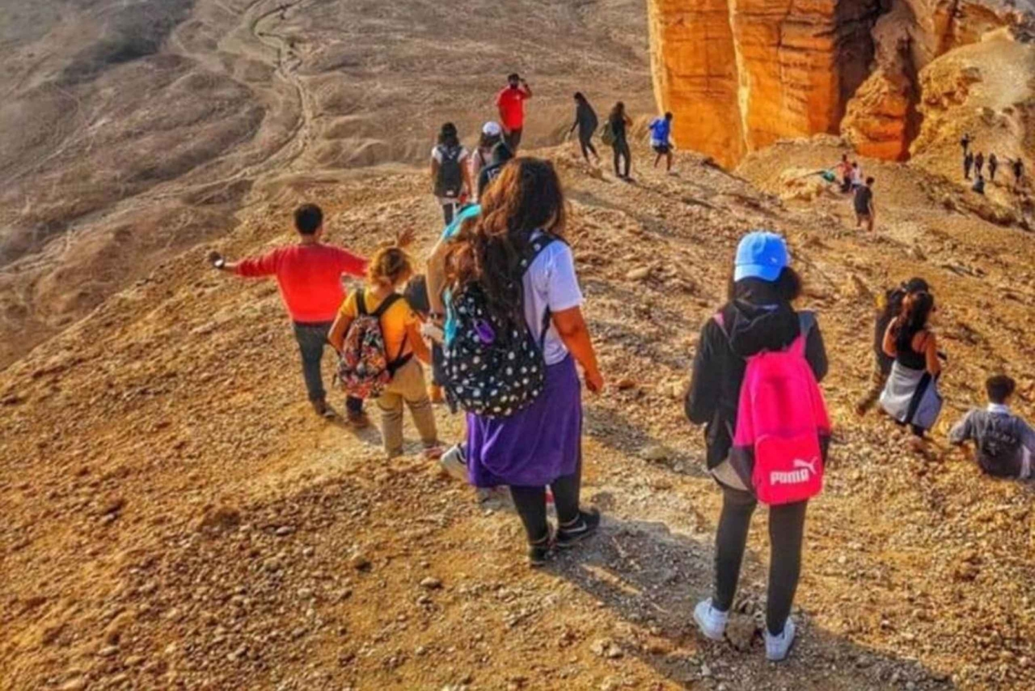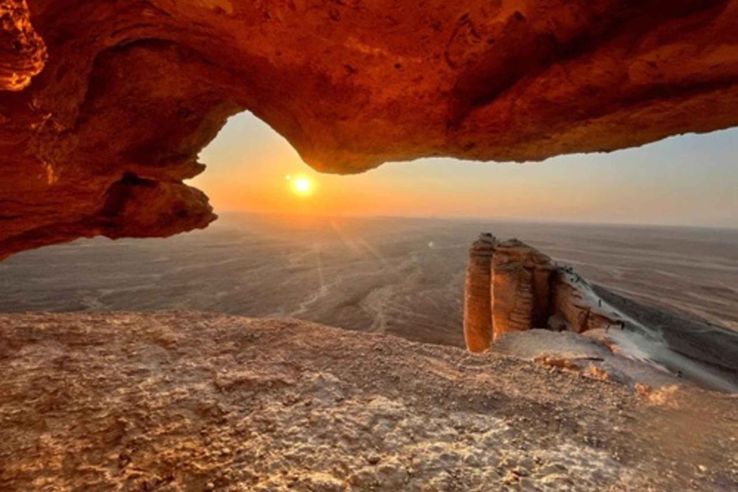 Oppdag de fantastiske klippene ved Edge of the World på en guidet tur fra Riyadh. Nyt en kameltur gjennom ørkenen, utforsk en mystisk hule og nyt en naturskjønn fottur.