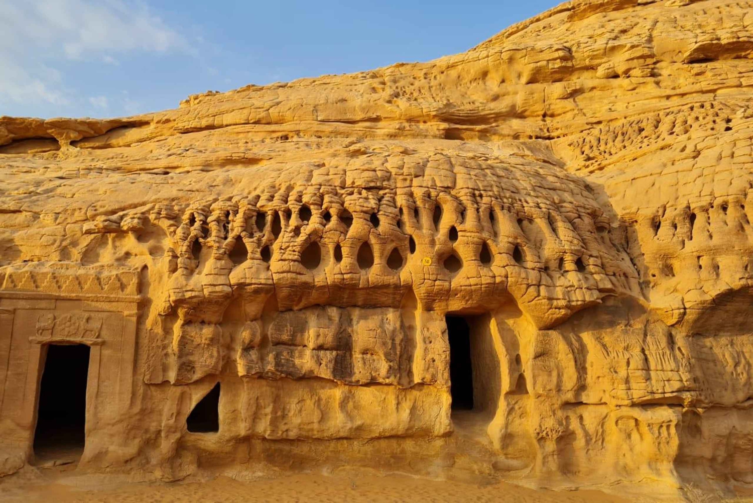 Besøk Hegra, Saudi-Arabias første Unesco-verdensarvsted, og det største bevarte stedet for den nabataiske sivilisasjonen sør for Petra. Hjem til mer enn 110 graver skåret fra gigantiske fjellformasjoner, er dette eldgamle stedet åpent for besøkende å utforske og lære om kulturen, tradisjonene og historien til folket.Includes