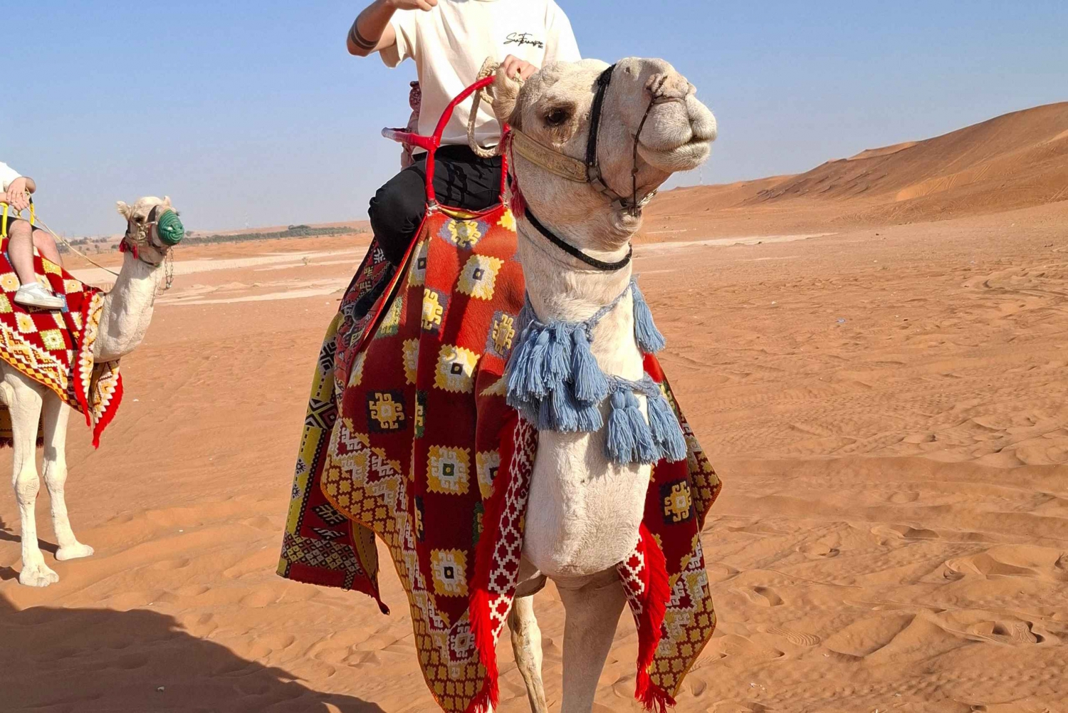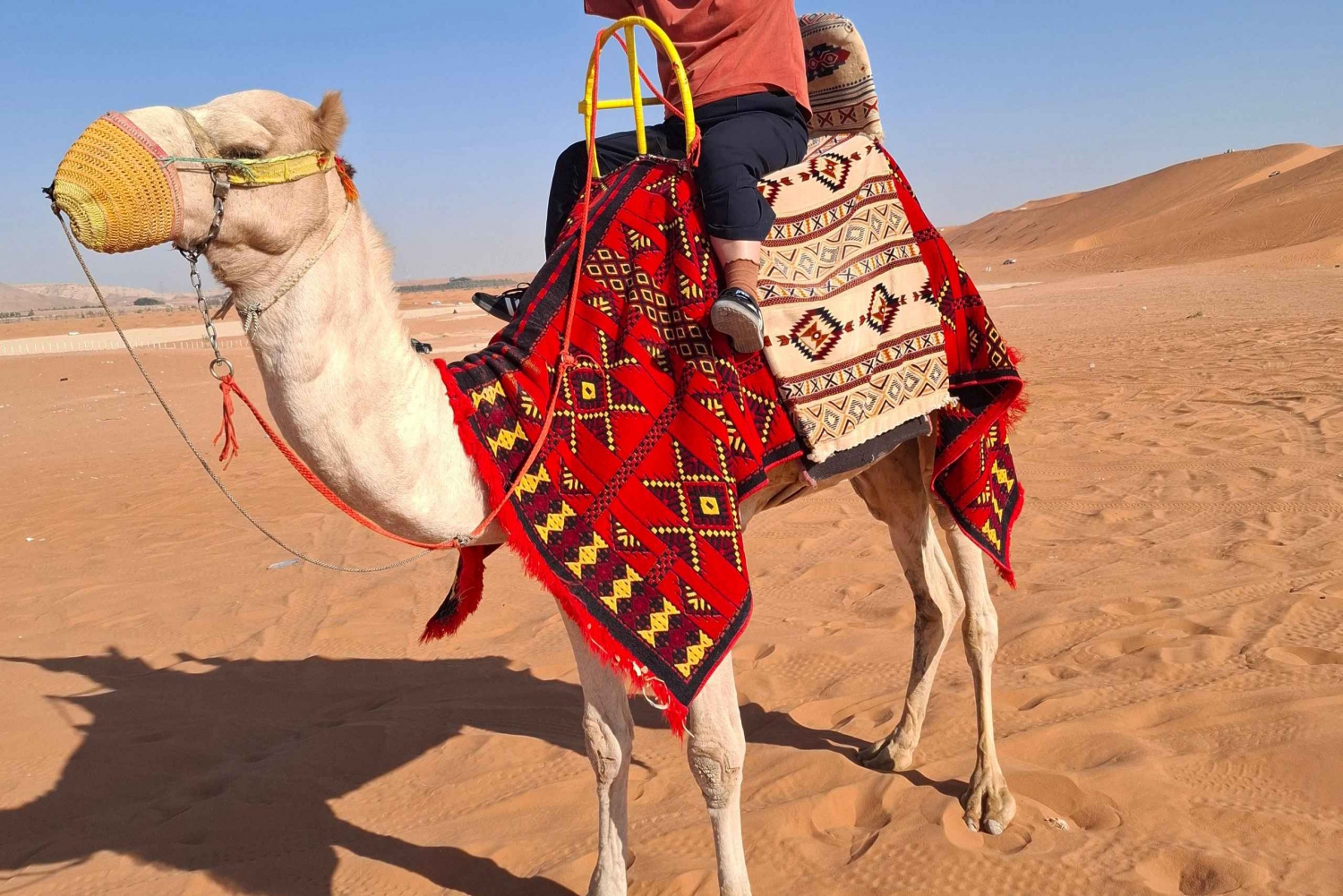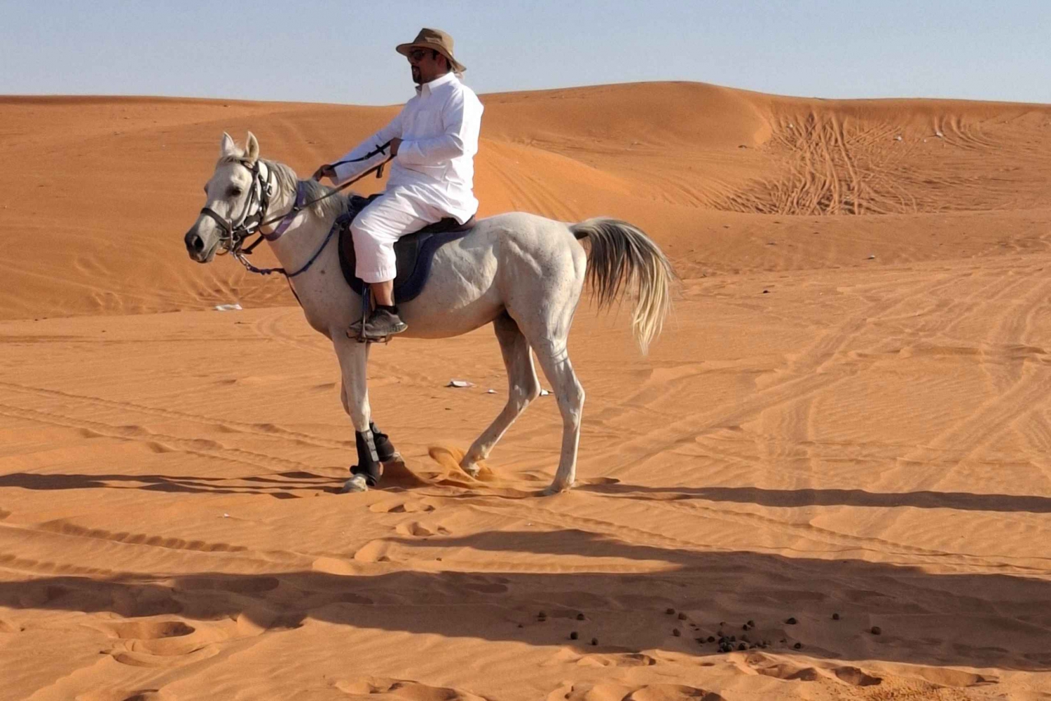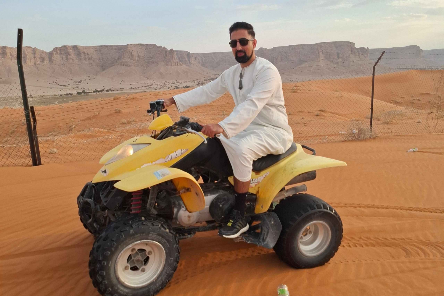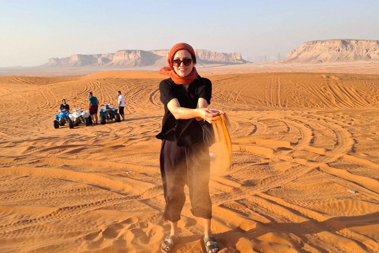 Oppdag og nyt et spennende ørkeneventyr på denne turen fra Riyadh. Nyt sanddynene, og lær om den arabiske kulturen med arabisk kaffe, søtsaker og te. I tillegg kan du oppleve kamelridning, firhjuling, sanddynevandring og fotografering. Sanddynene og klippene i Riyadh-ørkenen er som skapt for utendørsopplevelser. Ta det med ro og fokuser på det morsomme på denne turen. Dere reiser i et kjøretøy med klimaanlegg, og ved ankomst erobrer dere sanddynene mens dere nyter det enorme ørkenlandskapet. Instruksjoner, snacks og utstyr er inkludert for din egen komfort. Riyadh-ørkenen lover deg en uforglemmelig opplevelse som kombinerer enkelhetens sjarm med naturens magi.Includes