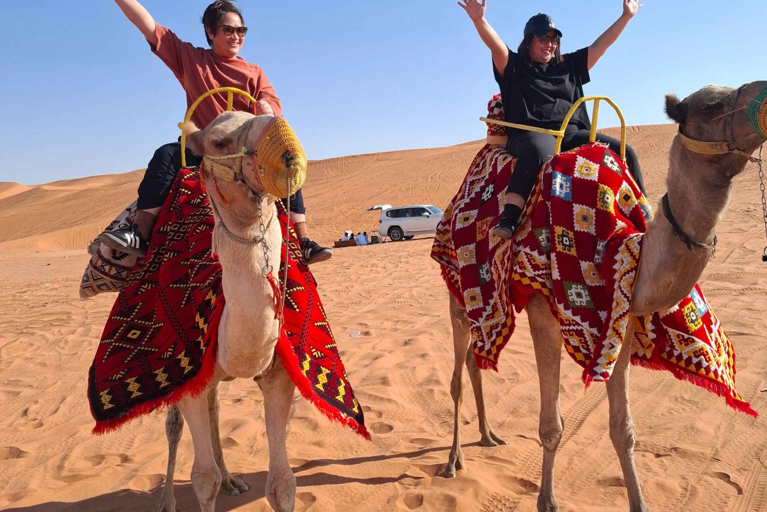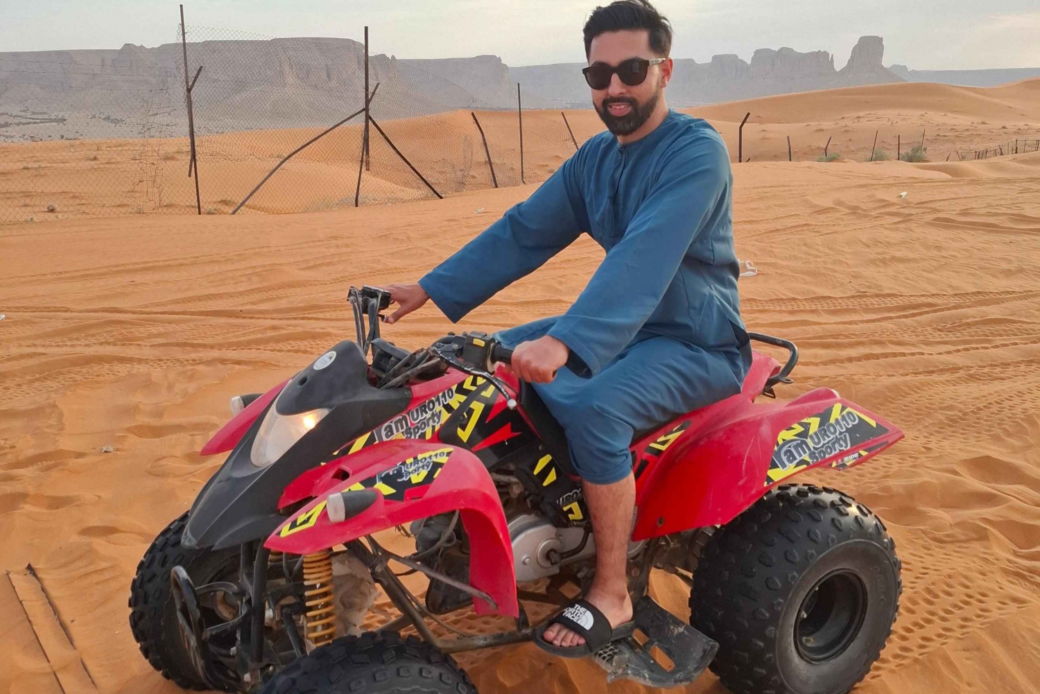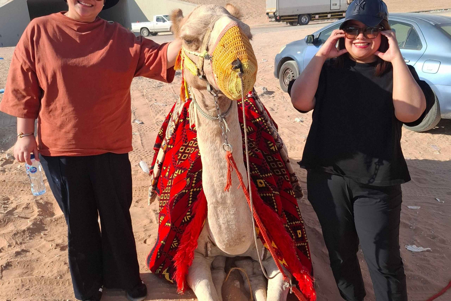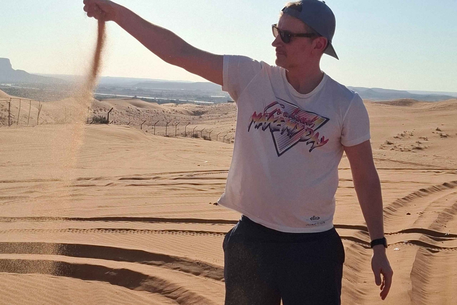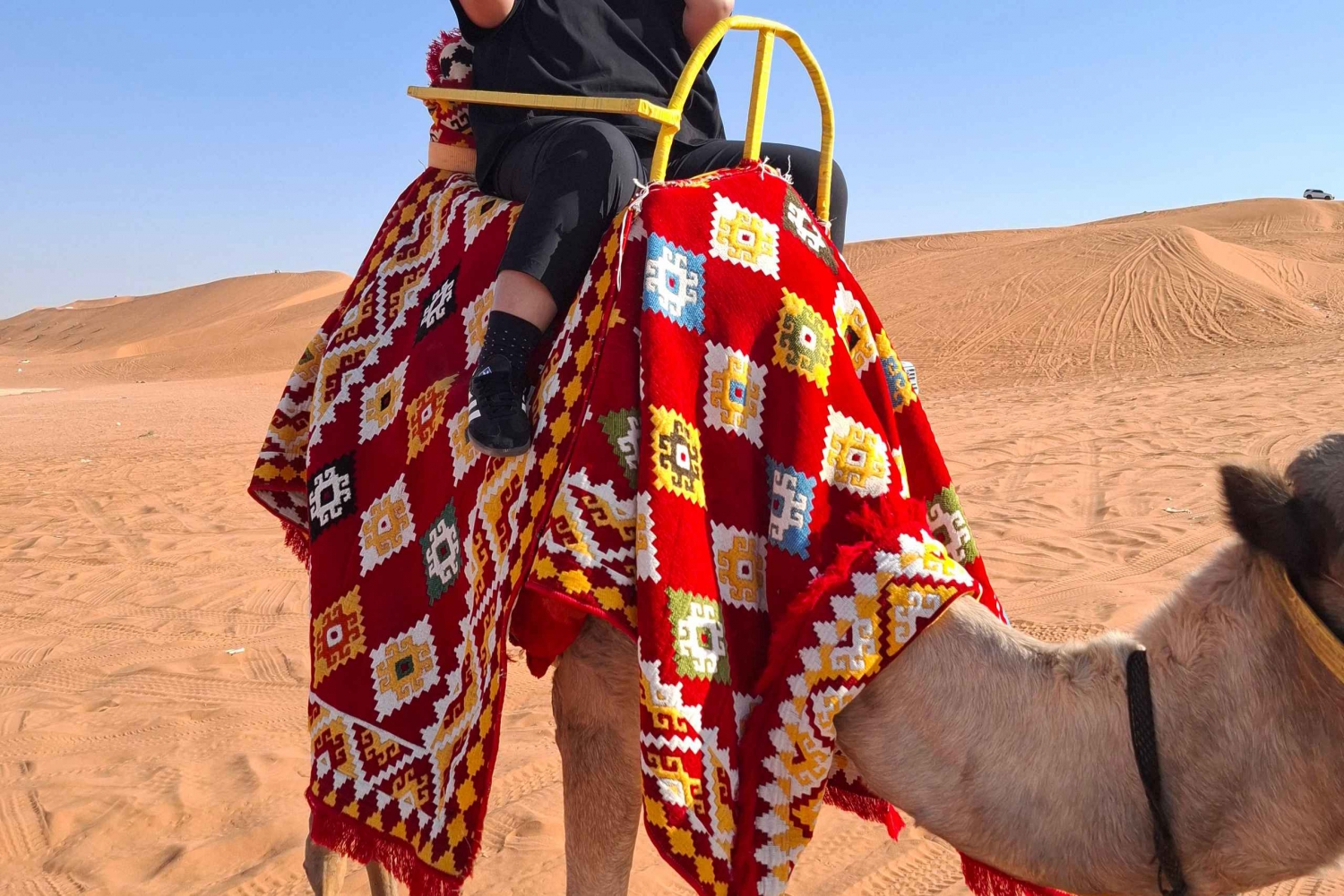 Oppdag og nyt et spennende ørkeneventyr på denne turen fra Riyadh. Nyt sanddynene, og lær om den arabiske kulturen med arabisk kaffe, søtsaker og te. I tillegg kan du oppleve kamelridning, firhjuling, sanddynevandring og fotografering. Sanddynene og klippene i Riyadh-ørkenen er som skapt for utendørsopplevelser. Ta det med ro og fokuser på det morsomme på denne turen. Dere reiser i et kjøretøy med klimaanlegg, og ved ankomst erobrer dere sanddynene mens dere nyter det enorme ørkenlandskapet. Instruksjoner, snacks og utstyr er inkludert for din egen komfort. Riyadh-ørkenen lover deg en uforglemmelig opplevelse som kombinerer enkelhetens sjarm med naturens magi.Includes