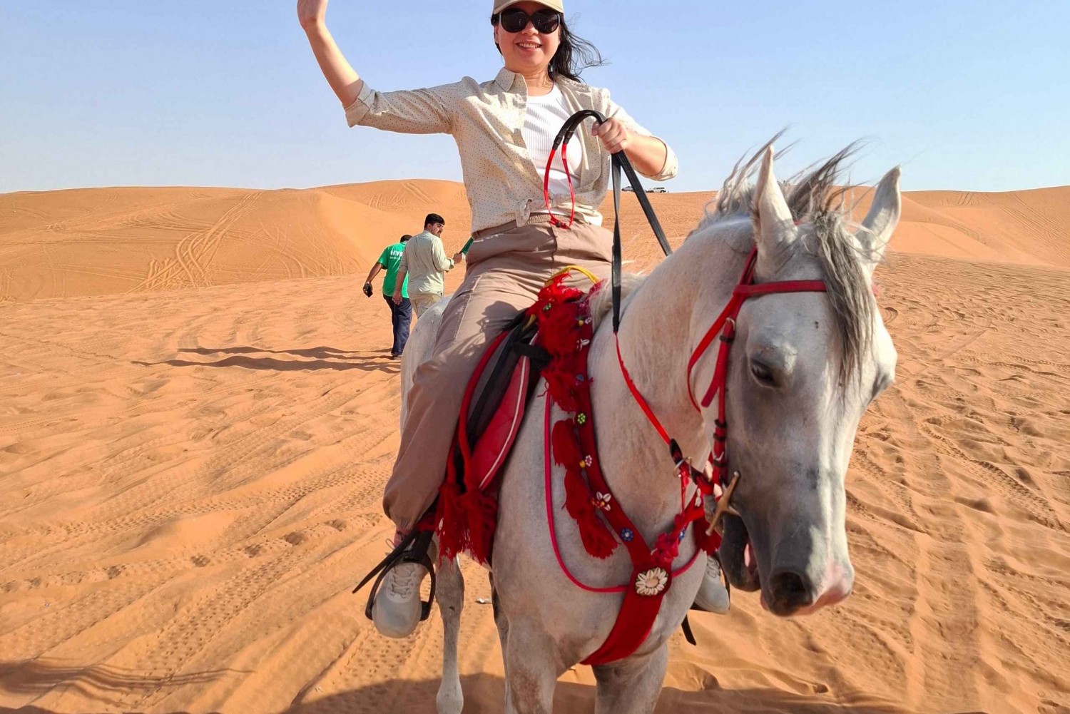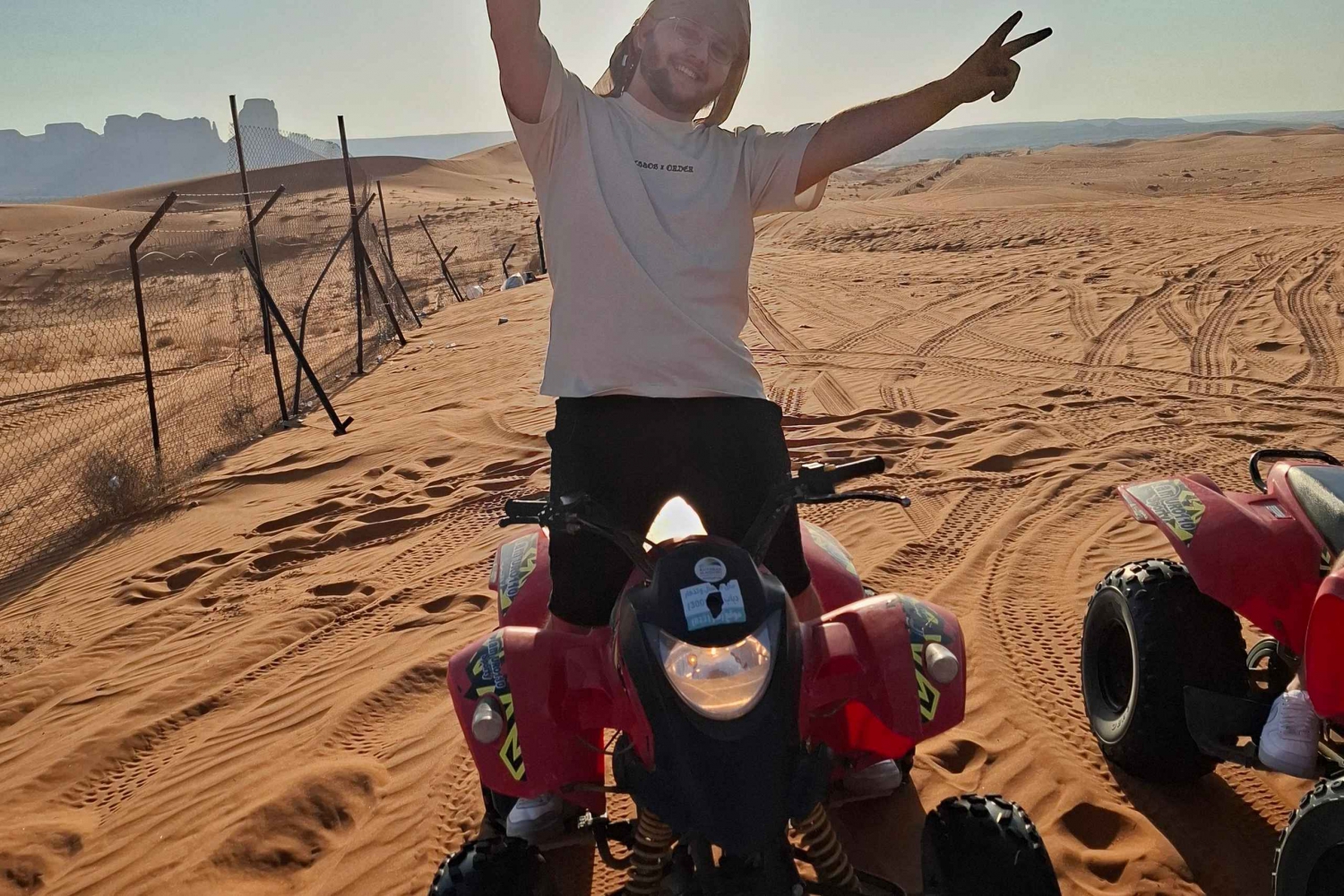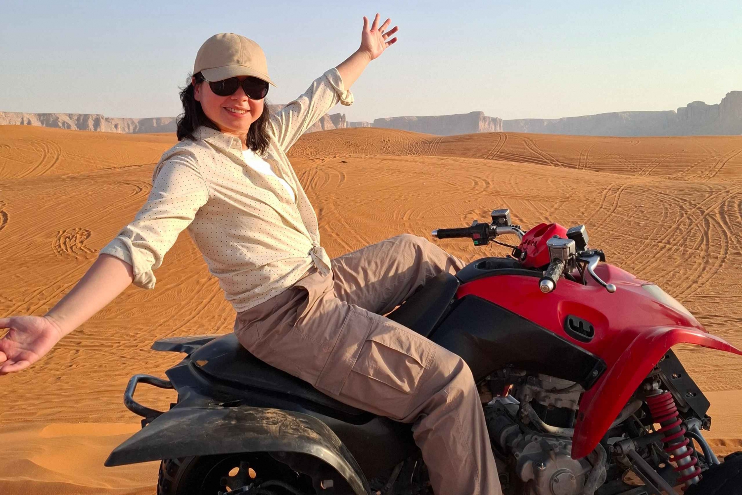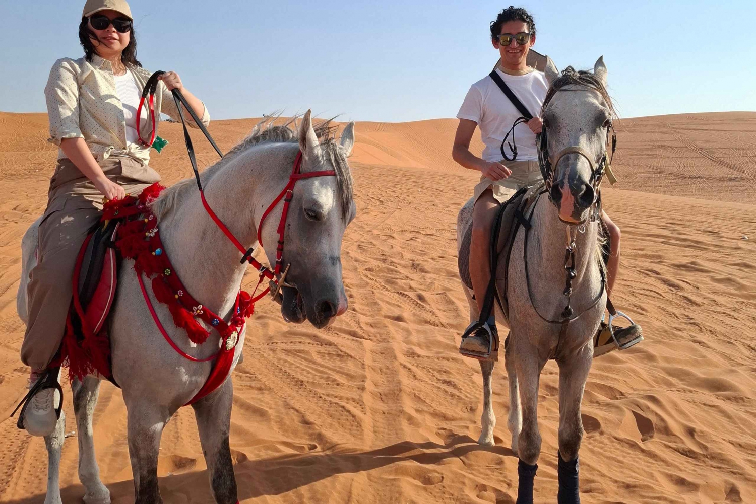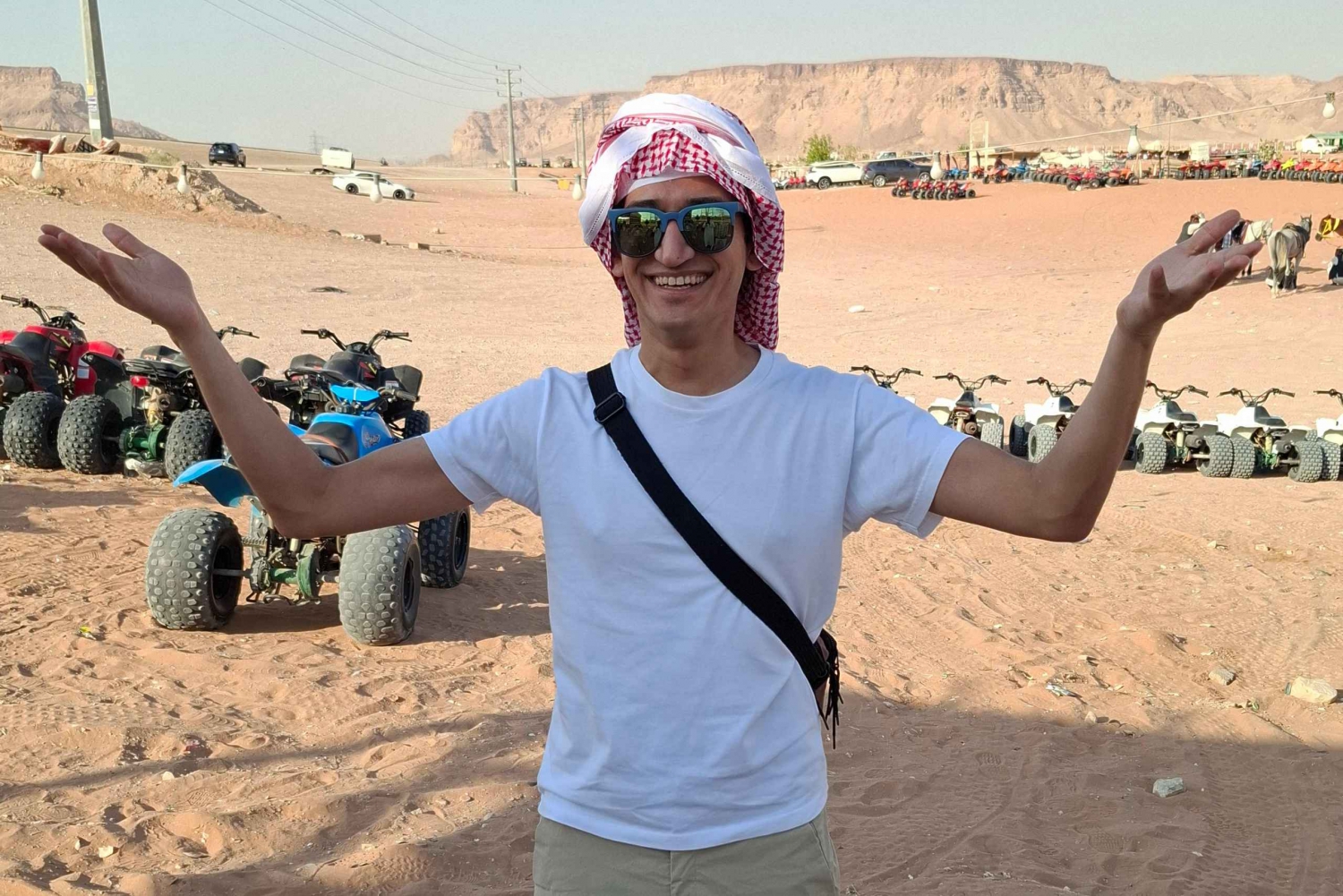 Oppdag og nyt et spennende ørkeneventyr på denne turen fra Riyadh. Nyt sanddynene, og lær om den arabiske kulturen med arabisk kaffe, søtsaker og te. I tillegg kan du oppleve kamelridning, firhjuling, sanddynevandring og fotografering. Sanddynene og klippene i Riyadh-ørkenen er som skapt for utendørsopplevelser. Ta det med ro og fokuser på det morsomme på denne turen. Dere reiser i et kjøretøy med klimaanlegg, og ved ankomst erobrer dere sanddynene mens dere nyter det enorme ørkenlandskapet. Instruksjoner, snacks og utstyr er inkludert for din egen komfort. Riyadh-ørkenen lover deg en uforglemmelig opplevelse som kombinerer enkelhetens sjarm med naturens magi.Includes