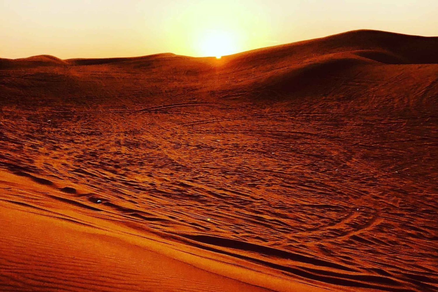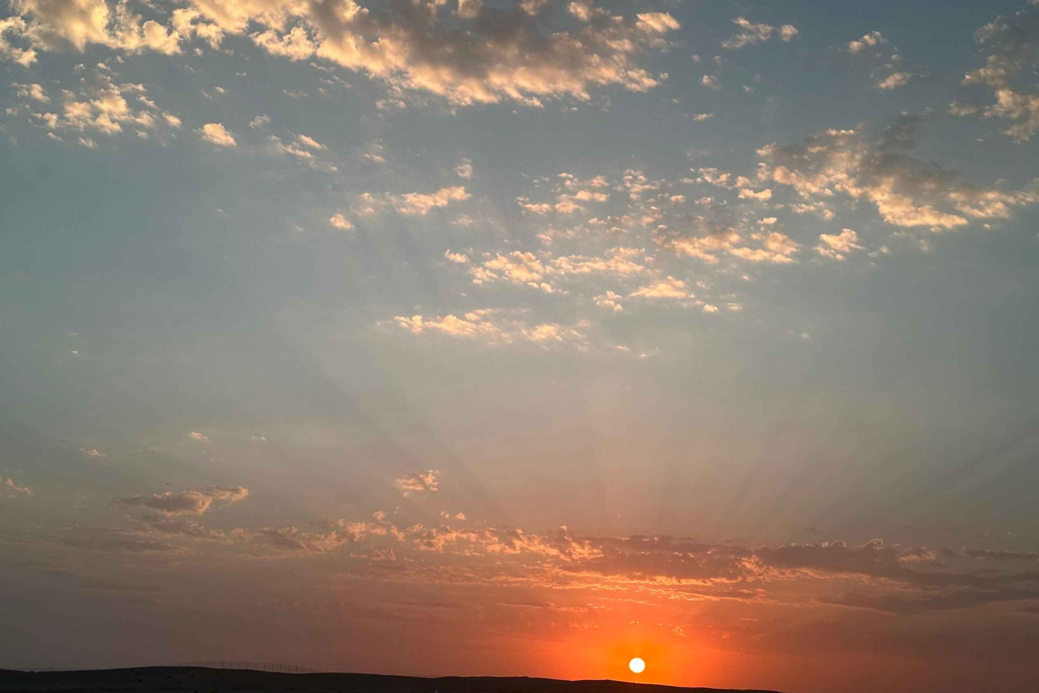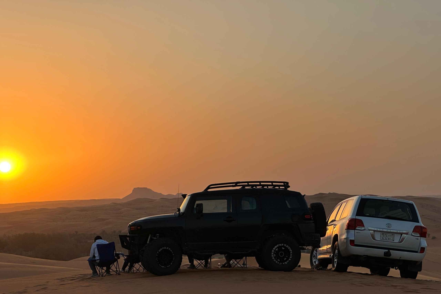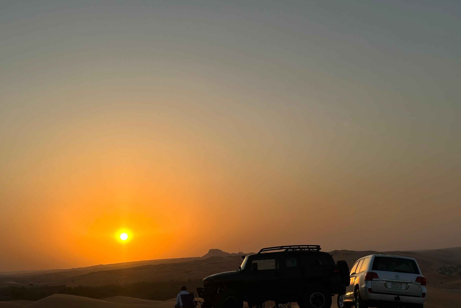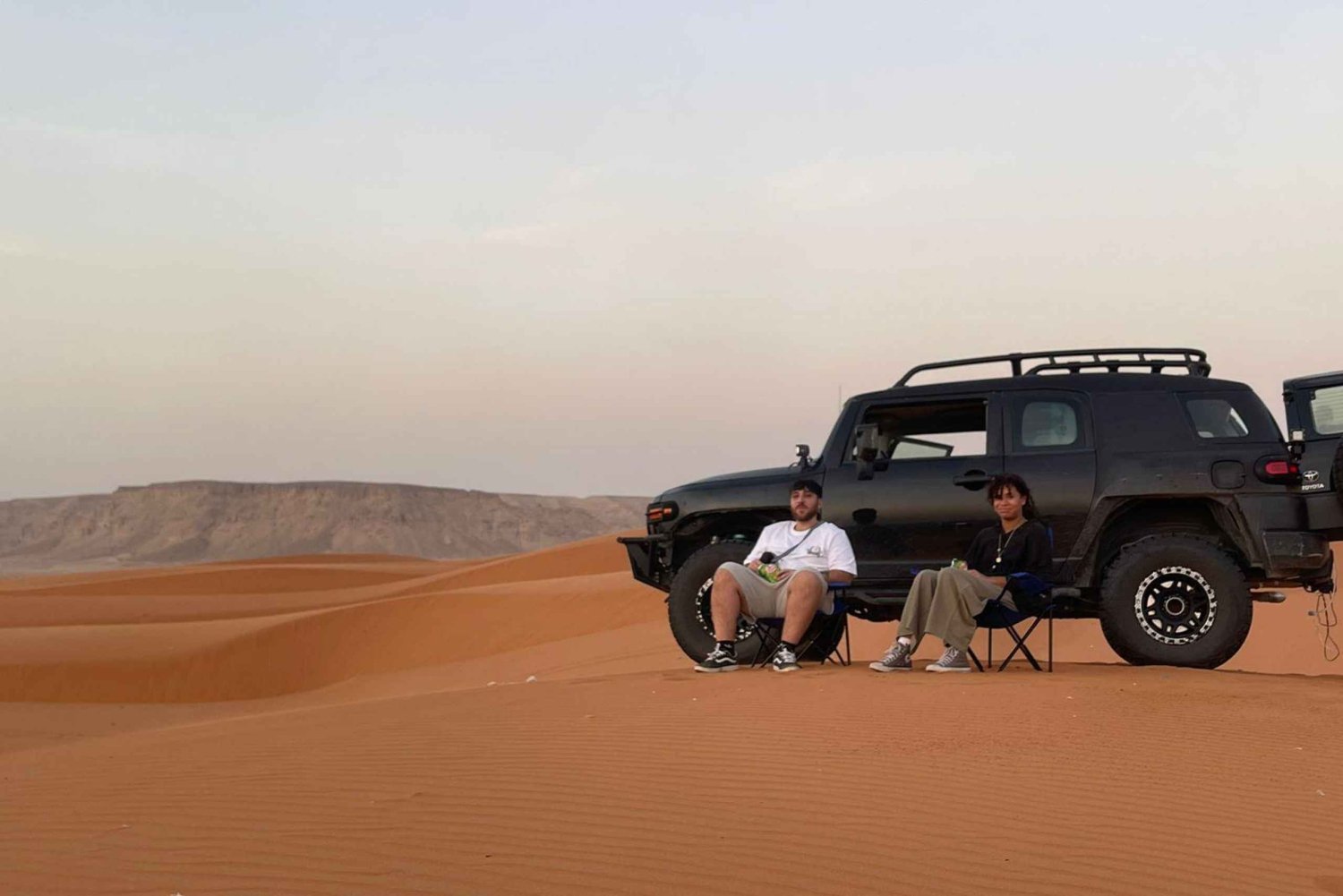 Dołącz do nas na safari po Czerwonym Piasku w Rijadzie i ciesz się zapierającymi dech w piersiach krajobrazami, zabawą i spokojem pustyni. Odkryj Czerwone Wydmy w Rijadzie, znane również jako Czerwony Piasek Rijad lub Pustynia Thumamah, popularne miejsce na wypoczynek na świeżym powietrzu, położone około 45–60 minut na północny wschód od Rijadu. Wydmy te słyną z intensywnie czerwono-pomarańczowego piasku, spowodowanego wysoką zawartością tlenku żelaza, i stanowią oszałamiający kontrast dla otaczającego je pustynnego krajobrazu. Spróbuj sandboardingu, rajdu po wydmach, quadów (ATV), przejażdżek na wielbłądzie i wędrówek. Odwiedź to miejsce wcześnie rano lub późnym popołudniem, jest to wspaniałe doświadczenie, zwłaszcza podczas zachodu słońca.Includes