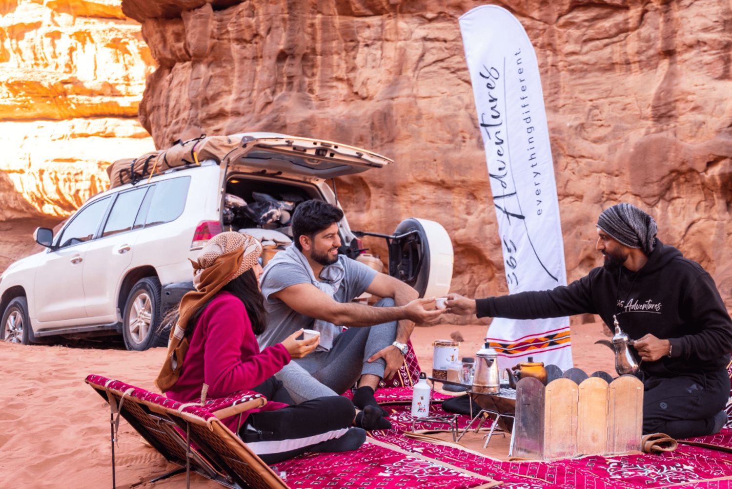 - Насладитесь саудовским гостеприимством с кештой, неограниченным количеством кофе, чая и фиников в вади.